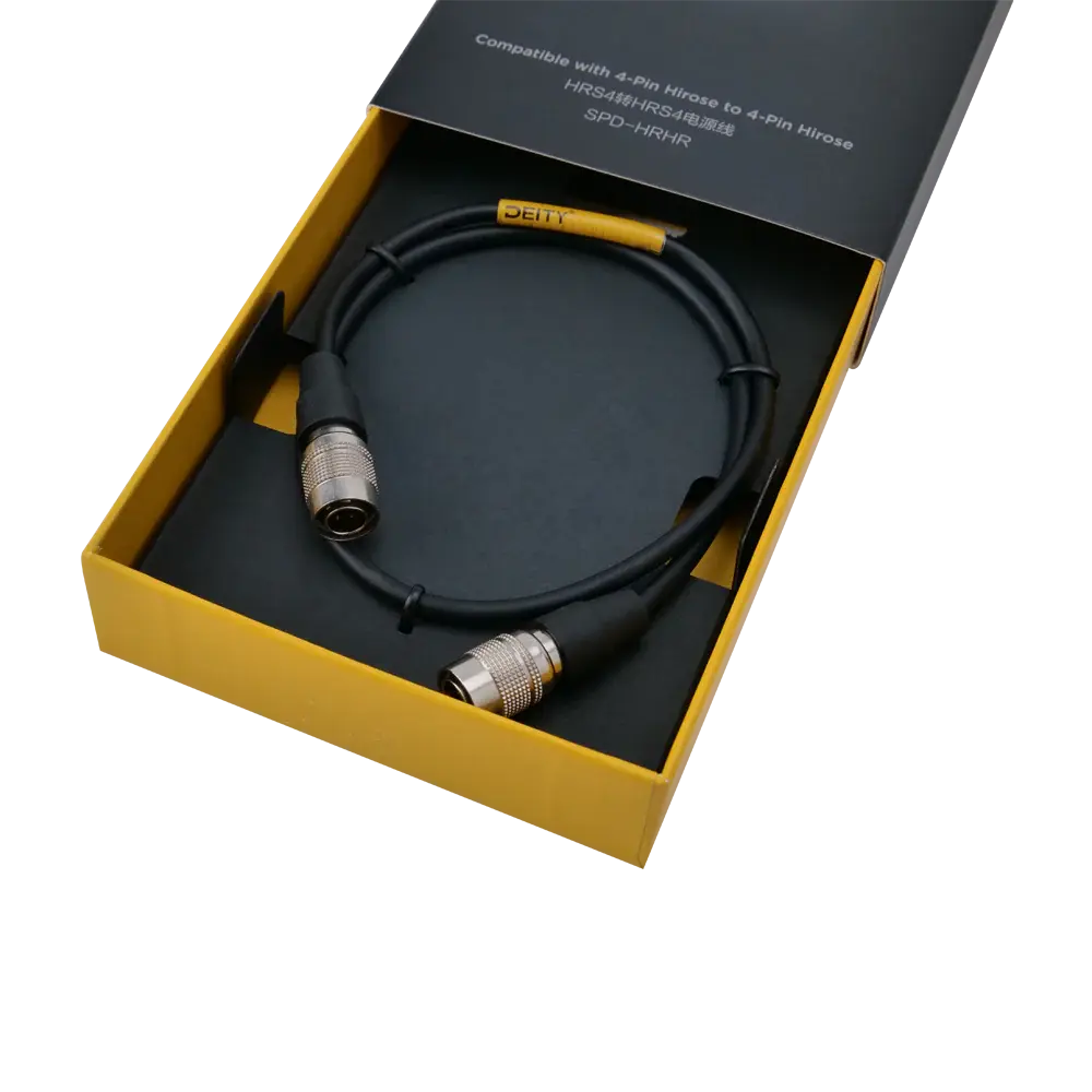 SPD-HRHR is a 4-Pin Push-Power (compatible with Hirose 4-Pin) to 4-Pin Push-Power connector. The SPD-HRHR is meant to be used with Hirose-compatible powered devices.