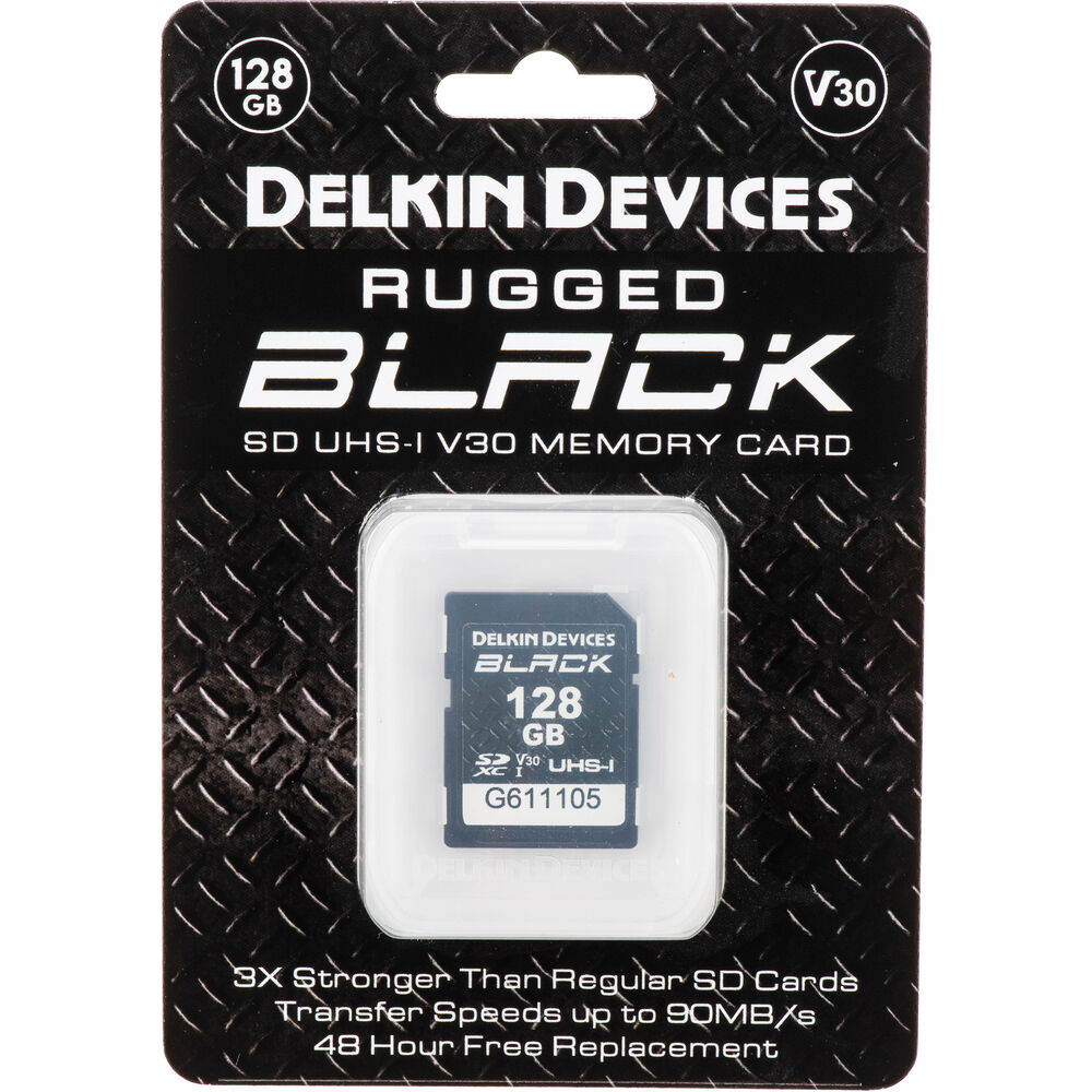 Combining industrial strength and reliability with fast performance, the 128GB BLACK UHS-I SDXC Memory Card from Delkin Devices features a storage capacity of 128GB and is designed for DSLRs and advanced camcorders that require faster speeds for demanding shooting modes. It is well-suited for raw and JPEG photo captures, as well as 4K, 3D, and Full HD cinema-quality video captures at high frame rates. You'll be able to achieve maximum read speeds of up to 90 MB/s and maximum write speeds of up to 90 MB/s. Thanks to its V30 speed class rating, minimum write speeds are guaranteed not to drop below 30 MB/s.