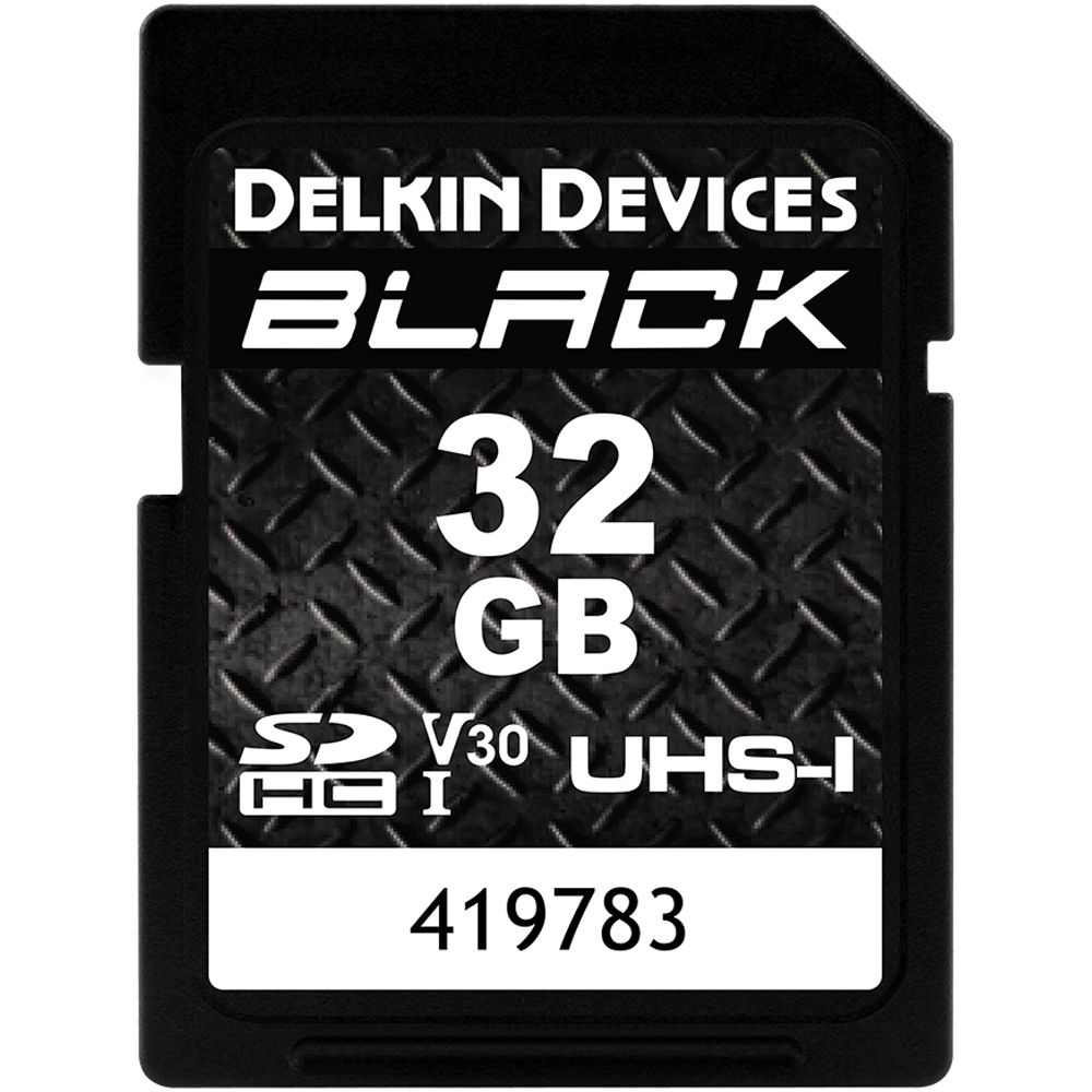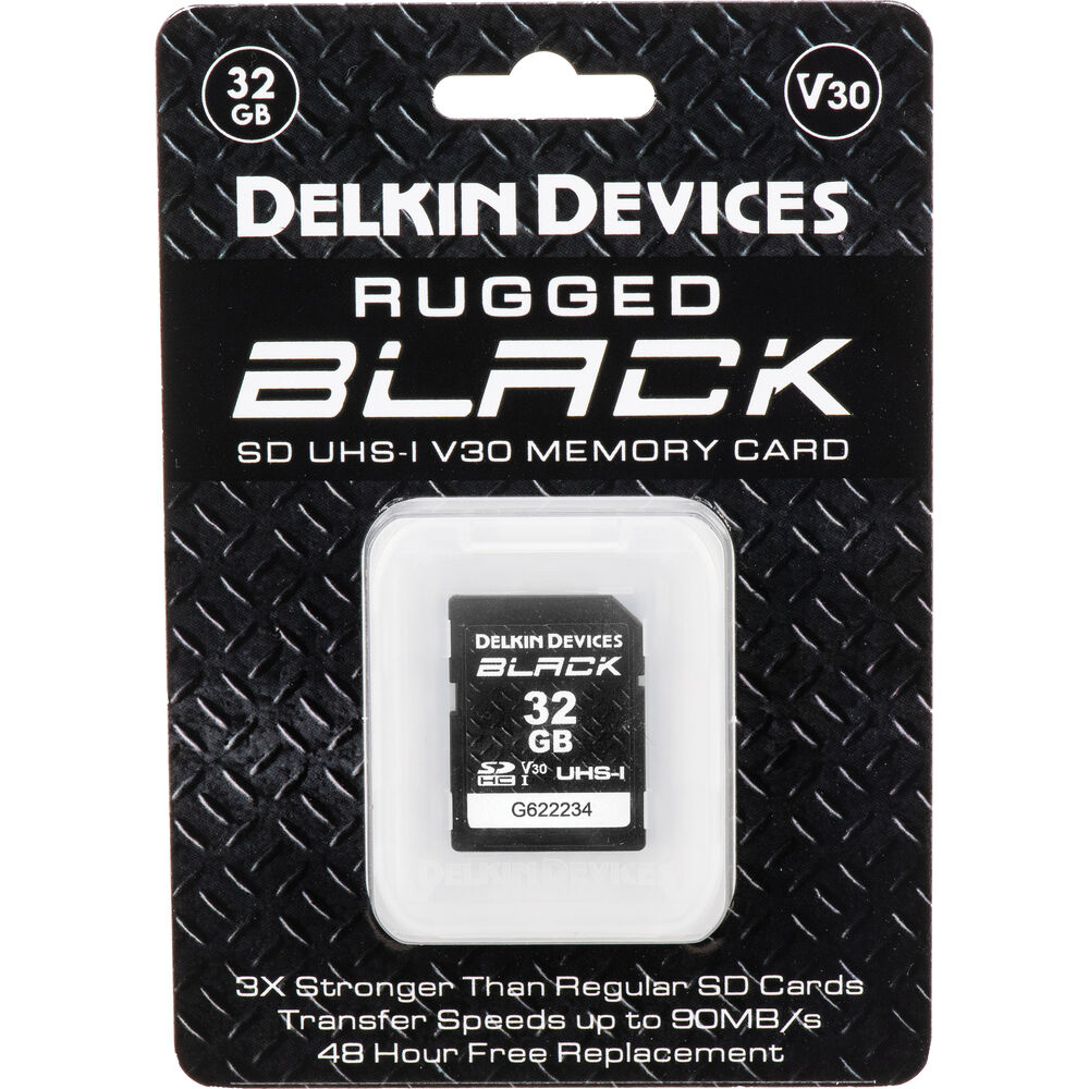 Combining industrial strength and reliability with fast performance, the 32GB BLACK UHS-I SDHC Memory Card from Delkin Devices features a storage capacity of 32GB and is designed for DSLRs and advanced camcorders that require faster speeds for demanding shooting modes. It is well-suited for raw and JPEG photo captures, as well as 4K, 3D, and Full HD cinema-quality video captures at high frame rates. You'll be able to achieve maximum read speeds of up to 90 MB/s and maximum write speeds of up to 90 MB/s. Thanks to its V30 speed class rating, minimum write speeds are guaranteed not to drop below 30 MB/s.