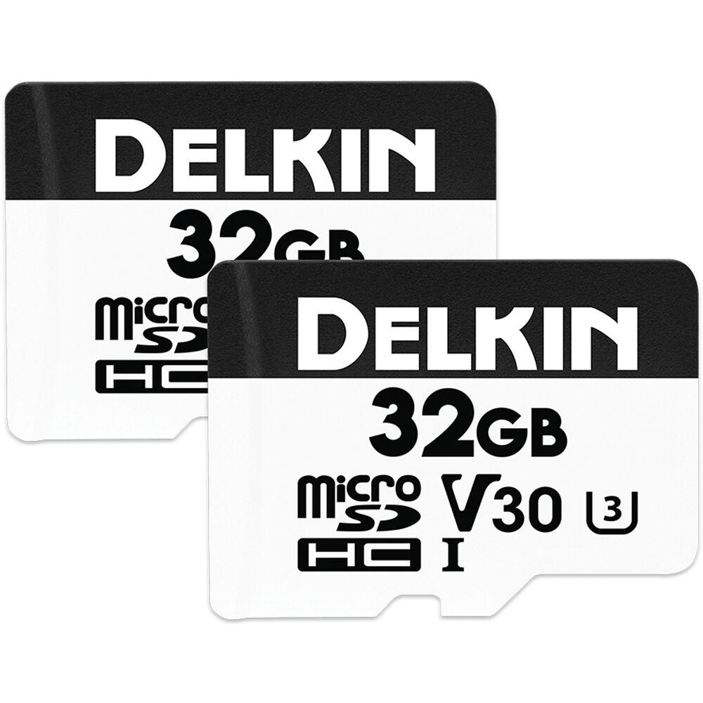 Optimized to excel in action cameras, drones, GPS units, fish finders, and other mobile devices, the Hyperspeed UHS-I microSDHC Memory Card (2-pack) from Delkin Devices features a storage capacity of 32GB per card and takes advantage of the UHS-II bus to support maximum read speeds of 100 MB/s and maximum write speeds of 75 MB/s. These cards have been designed with the V30 Video Speed Class rating, which guarantees minimum write speeds of at least 30 MB/s. All of this allows you to capture 4K, Full HD, HDR, and High Frame Rate (HFR) video. They also support raw and JPEG photos, as well as rapid shutter bursts and time-lapse.