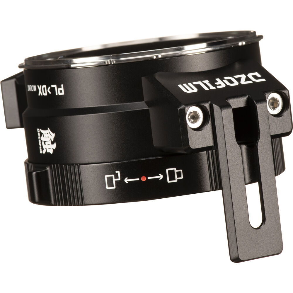 This PL lens to a DJI Ronin 4D DL camera mount Octopus Adapter from DZOFilm allows you to use a PL-mount lens on the DJI Ronin 4D DL mount, enabling you to use cinematic glass with a variety of cameras. This durable lens support features stainless steel and aluminum construction, and its tight fit prevents any play or wiggle at any temperature and maintains infinity focus. The 1/4"-20 thread on the bottom allows you to add support for a longer lens. The lightweight adapter features internal flocking, which helps reduce internal reflections for a clean image.