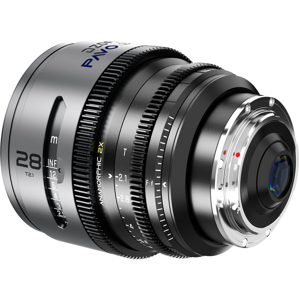 Capture stunning cinematic images with a vintage anamorphic look using this PAVO 28mm T2.1 2x Anamorphic Prime Lens from DZOFilm. Designed to cover the Super35 sensor of cine-style cameras, this blue-coated lens has a maximum aperture of T2.1 and employs 2x magnification, thus achieving what is commonly referred to as “true” anamorphic imaging with a 2.39:1 aspect ratio and boasting exceptional “waterfall” bokeh and elegant blue horizontal flares.
