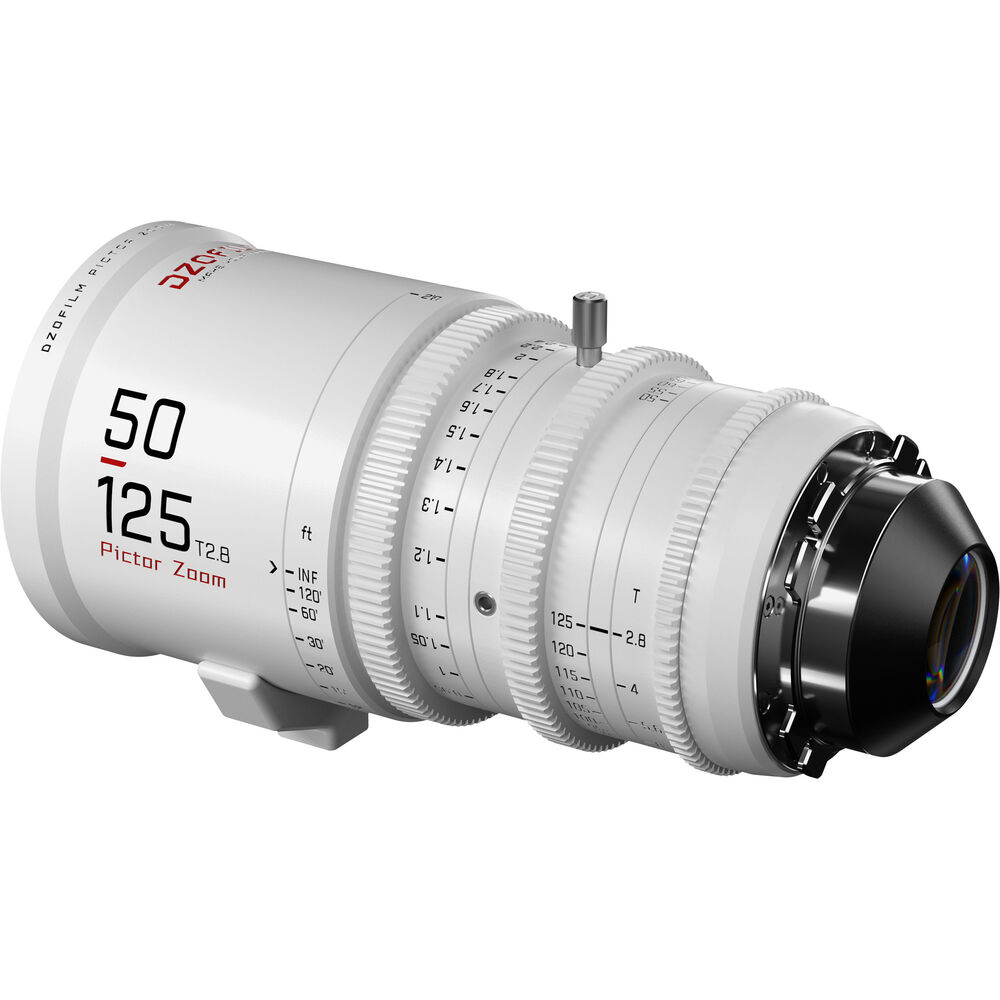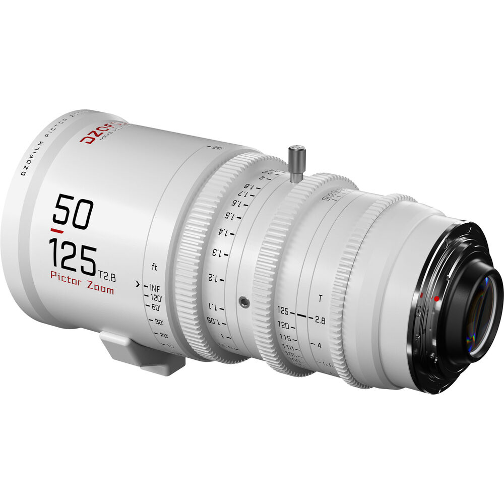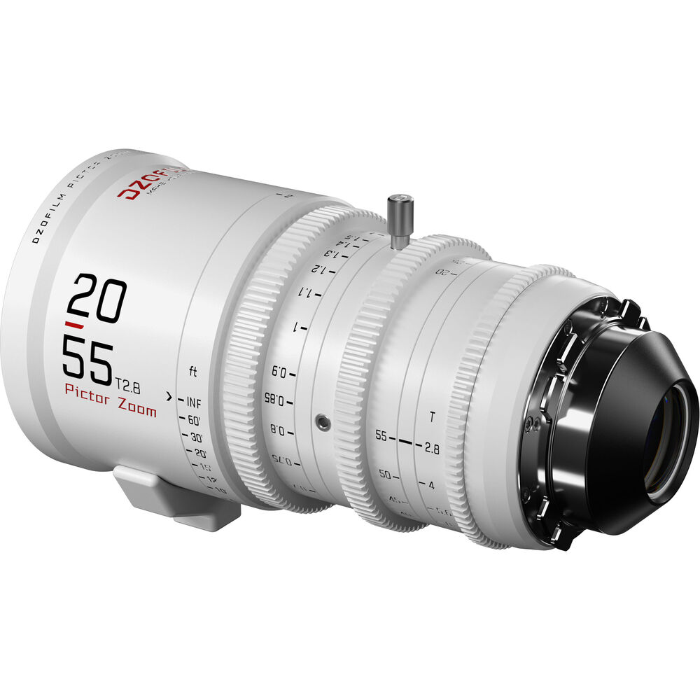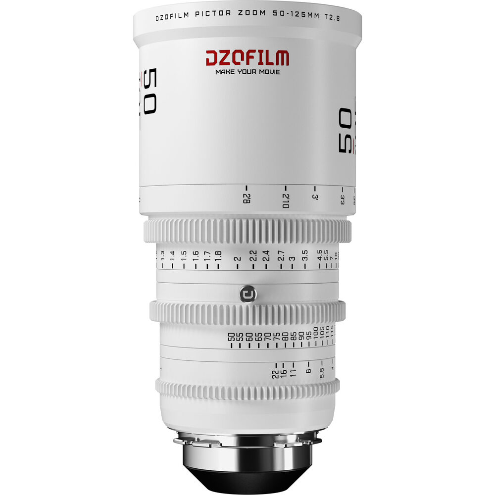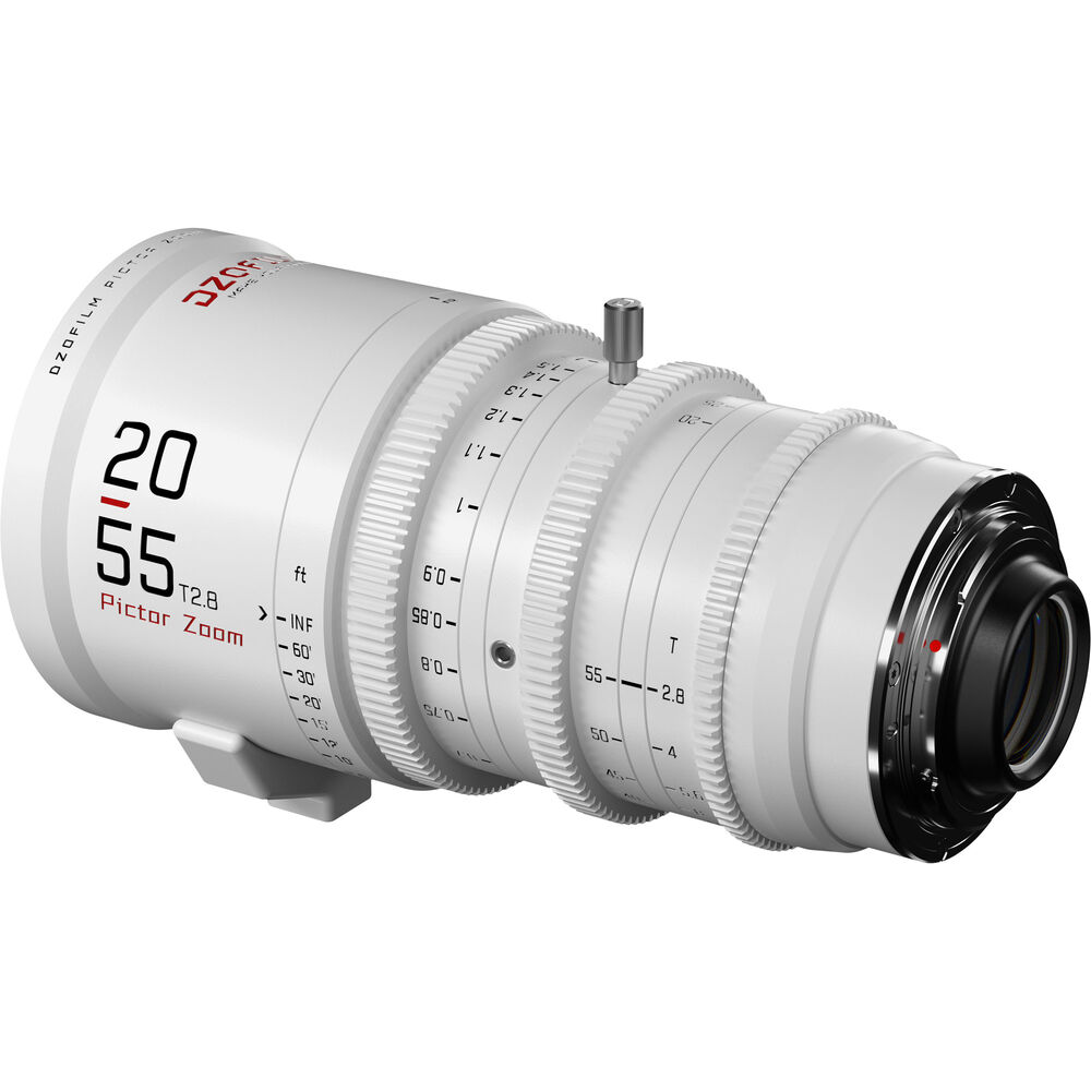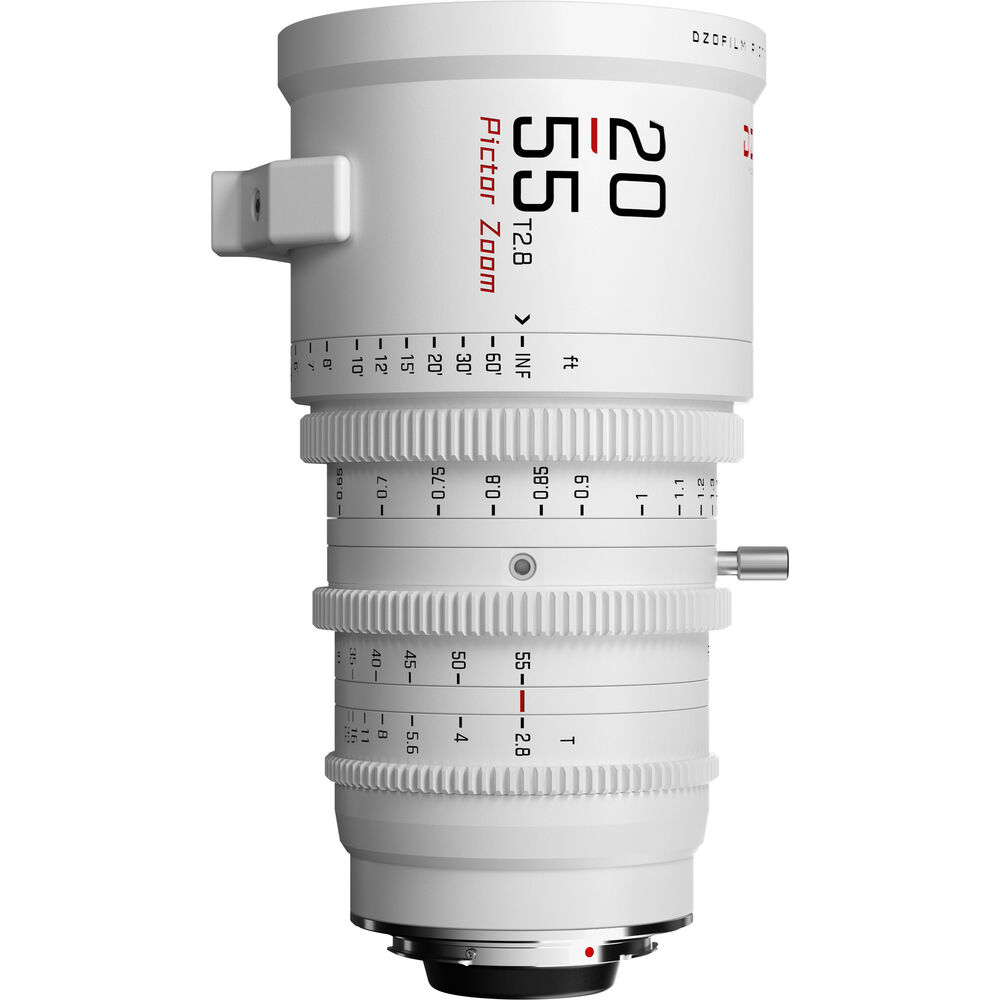 The Pictor 20-55mm and 50-125mm T2.8 Super35 Zoom Lens Bundle from DZOFilm comprises a two-lens set with a white finish. The lenses provide coverage of an extended zoom range with a relatively fast maximum aperture. Both lenses cover Super35 and have similar lengths, weight, lens gear positions, and front outer diameter, making for fast lens swaps.