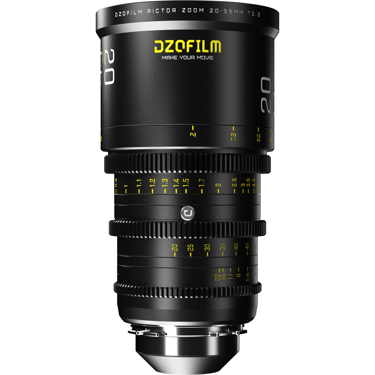 A parfocal cine lens, the DZO Pictor 20 to 55mm T2.8 Super35 Parfocal Zoom Lens features a relatively fast maximum aperture of T2.8 with an aperture range of T2.8 to T22. As you would expect from a cinema-style zoom, the lens is parfocal, meaning it holds focus throughout the zoom range. The internal focus design with floating elements virtually eliminates focus breathing. It covers a Super35 image circle, comes standard with an interchangeable PL mount, and includes an EF mount.