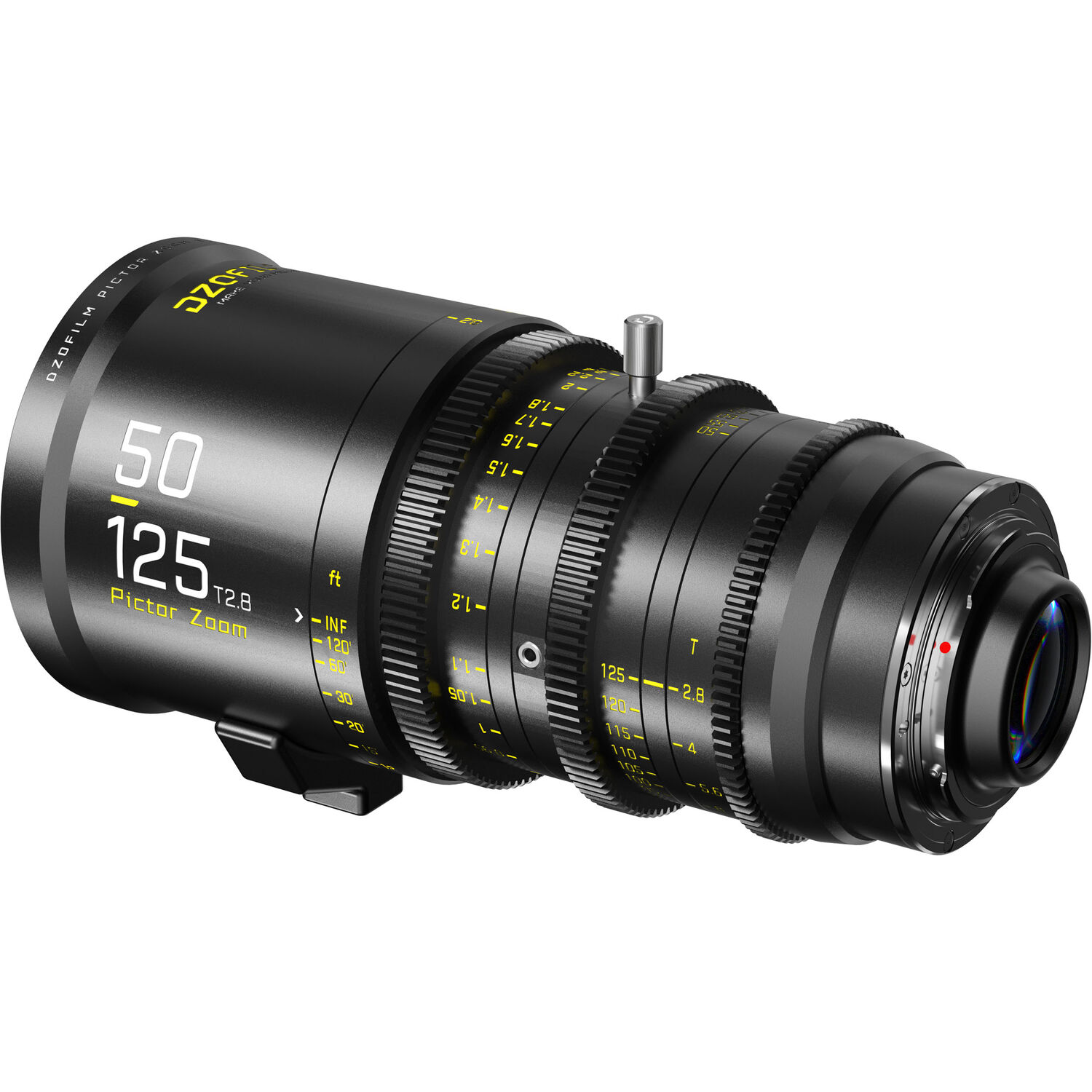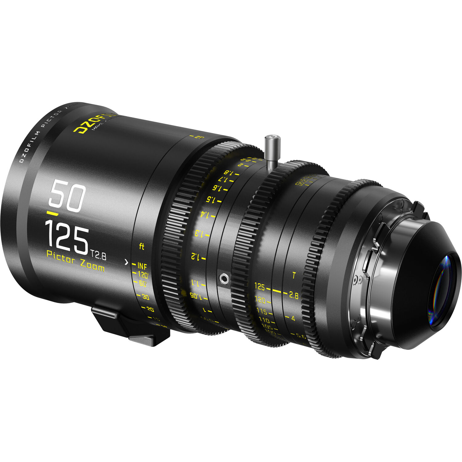 A parfocal cine lens, the DZO Pictor 50 to 125mm T2.8 Super35 Parfocal Zoom Lens features a relatively fast maximum aperture of T2.8 with an aperture range of T2.8 to T22. As you would expect from a cinema-style zoom, the lens is parfocal, meaning it holds focus throughout the zoom range. The internal focus design with floating elements virtually eliminates focus breathing. It covers a Super35 image circle, comes standard with an interchangeable PL mount, and includes an EF mount.
