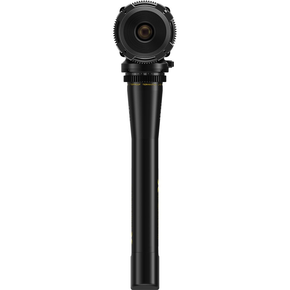 Offering a 100 to 73° field of view, the ARRI PL-mount, 360° X-Tract 18-28mm T8 FF Probe Zoom Lens from DZOFilm brings innovative close-up capture to your productions. This compact probe lens measures just 16.3" in length and has a front outside diameter of less than 1.2", making it ideal for tight setups. It features a relatively fast T8 maximum aperture, a 2.1:1 maximum magnification, and a 0.24" minimum focusing distance. This 360° version offers a periscopic view; 0° direct view and 90° right-angle lens versions are available separately.
