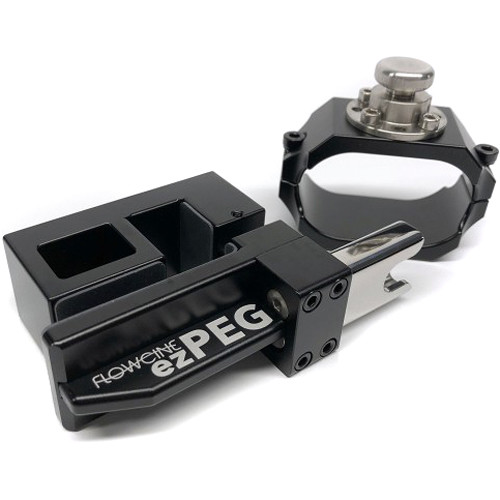 Dock your Easyrig 2, 2.5, Vario 5, or Cinema 3 stabilizer rig between shots onto an INOVATIV cart with this two-part ezPeg Cart Docking Attachment from Flowcine. One part of the ezPeg clamps to the edge of an INOVATIV Apollo, Echo, Scout, or Ranger series cart. The second part tightens around the Easyrig's support arm allowing you to easily slide the rig into the cart clamp for docking.