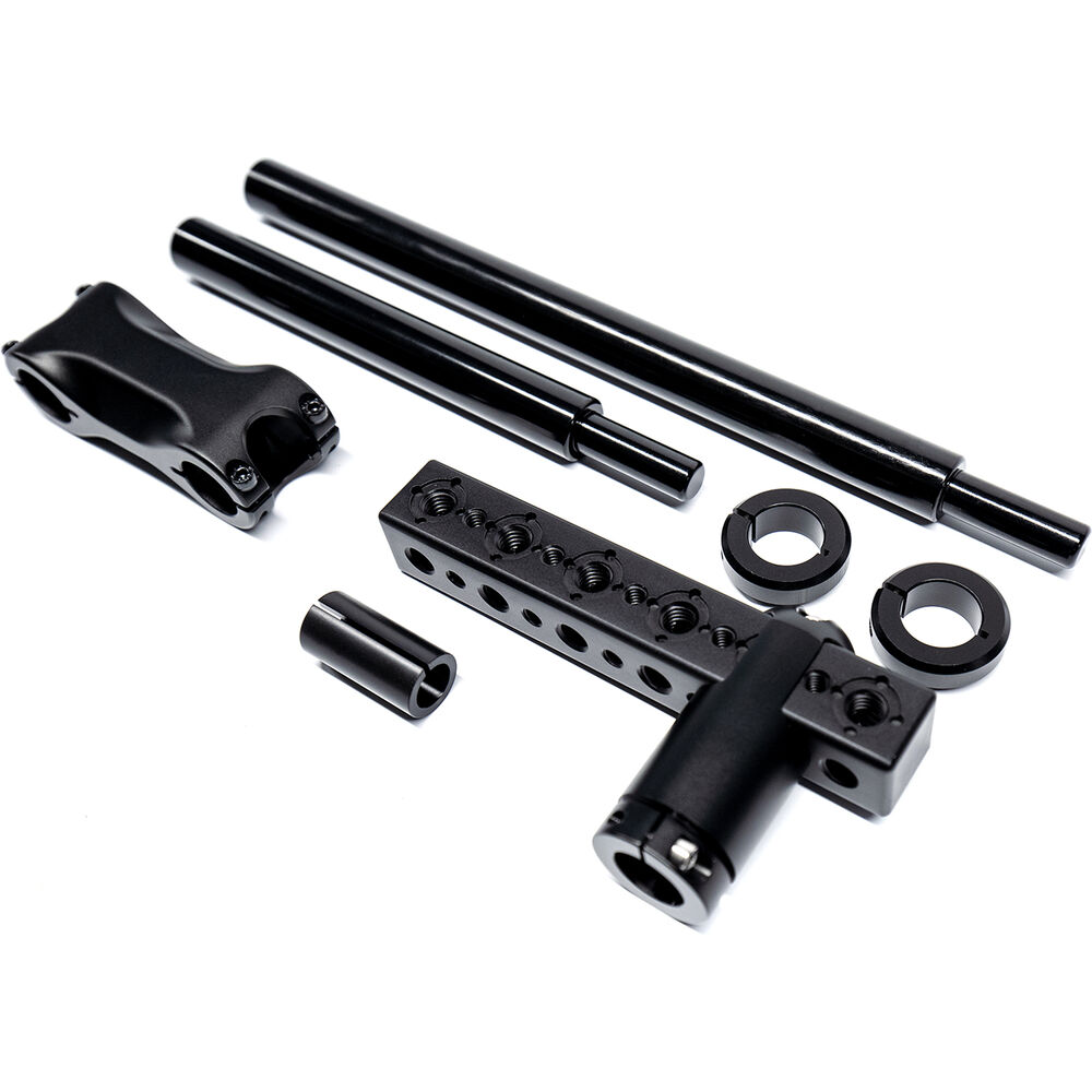 The low-mode grip handle connects to the xARM and allows you to reach and control the arm when in extreme low mode without much effort, and it allows you to mount additional accessories. The two arm posts allow you to mount a Tiffen gimbal with a 0.51" post connector and the link bracket allows you to adjust the two posts in a variety of configurations for a higher positioning of your gimbal.