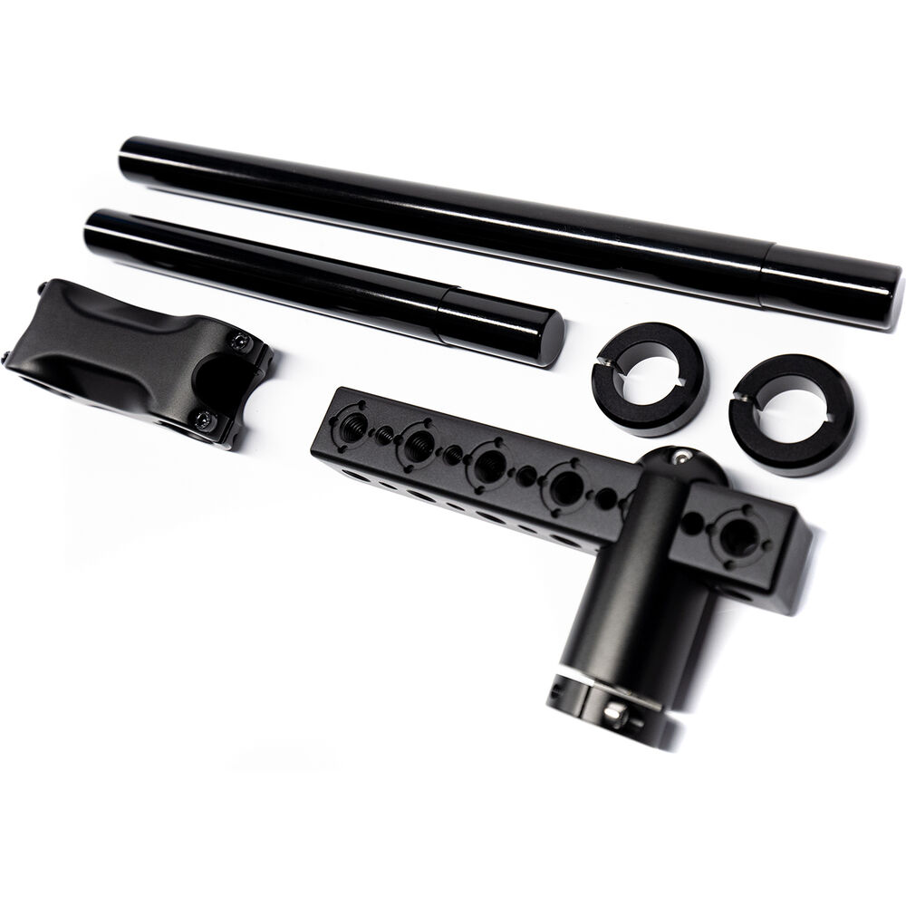 The low-mode grip handle connects to the xARM and allows you to reach and control the arm when in extreme low mode without much effort, and it allows you to mount additional accessories. The two arm posts allow you to mount a Tiffen gimbal with a 0.74" post connector and the link bracket allows you to adjust the two posts in a variety of configurations for a higher positioning of your gimbal.