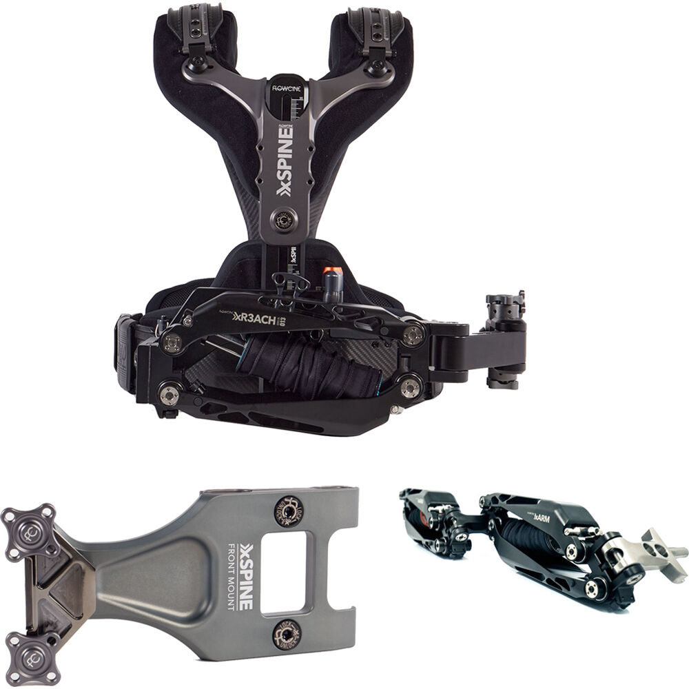 The adjustable vest fits just about any body size and supports loads from 37 to 64 lb. The xR3ACH arm mounts on the right side ("goofy" setup) of the vest, and the front mount provides a universal mount for a variety of support arms such as the xARM, as well as the Tiffen and GPI Pro brands. The included xARM provides stability and mobility for your camera rig when performing handheld motion shots. Cases are included with the components to store and transport the bundle.