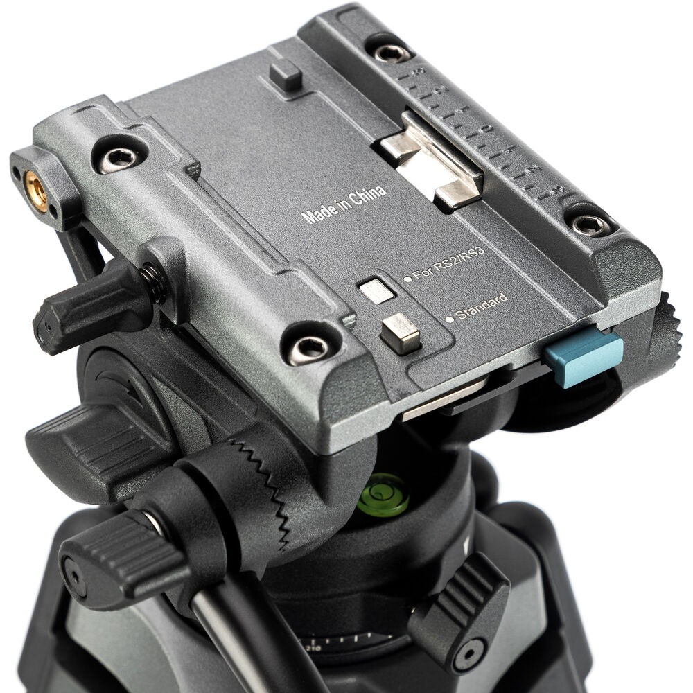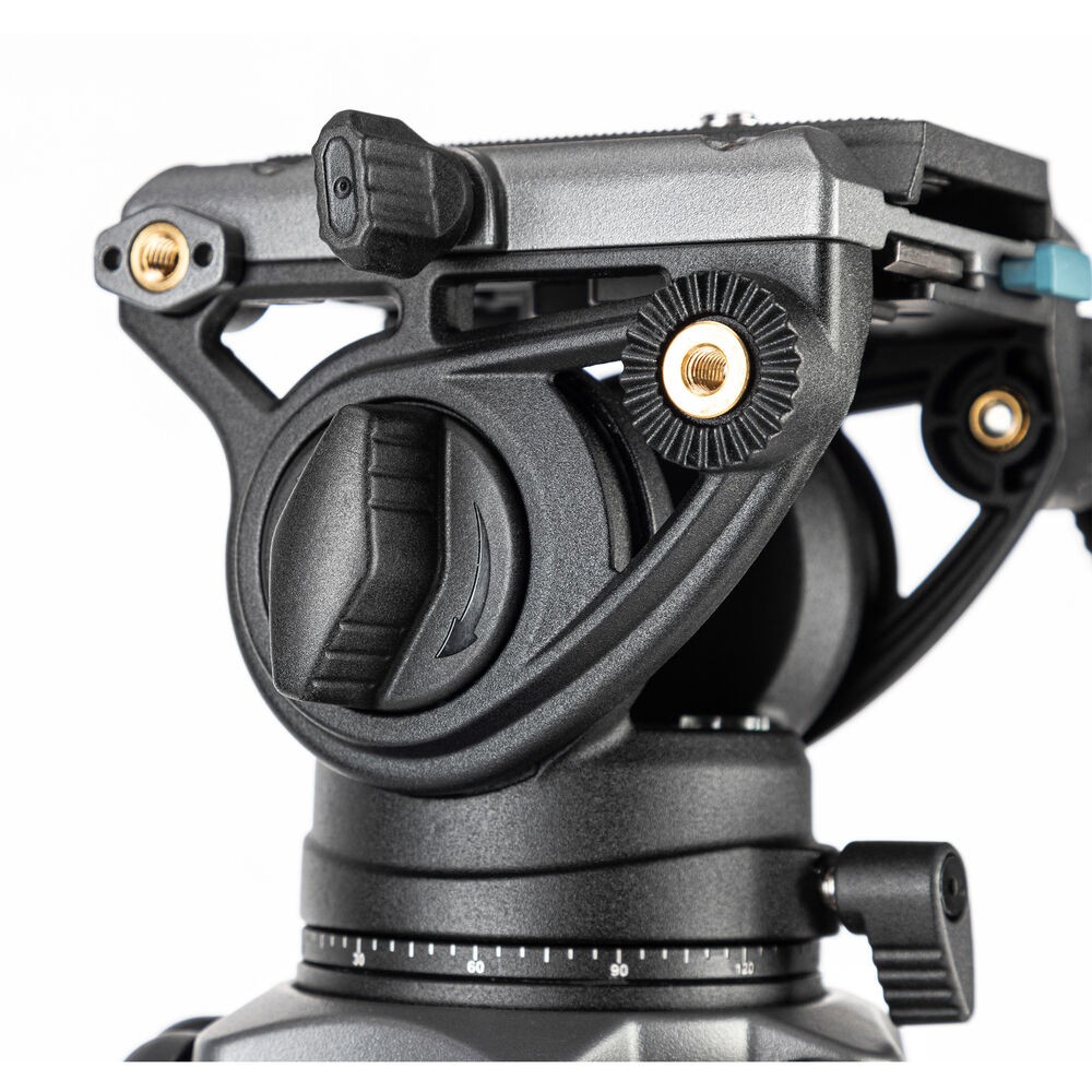 The DV-3A Pro features a single-lever quick lift system, eliminating the hassle of adjusting multiple joints on each leg and saving valuable time on set. The 75mm fluid head includes a convenient bowl-leveling system, a Manfrotto longboard standard quick release plate, and an extendible pan bar with a padded grip. A built-in mid-level spreader and reinforced legs provide sturdy support for heavy loads.