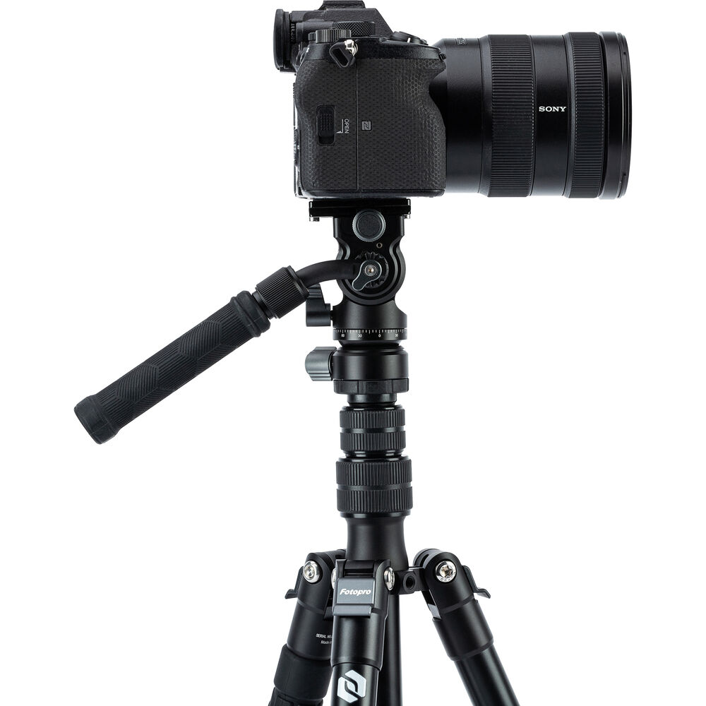 The compact head features an Arca-type quick release plate with a 1/4"-20 camera mounting screw for quick changing of your camera rig. It has a tilt range of -90 to 55°, it can pan a full 360°, and it features independent pan and tilt locks. The included pan handle can be installed on either the right or left side of the head, and it features a bubble level. An Allen wrench is included to help tighten the plate onto your rig, and it stores within the head.