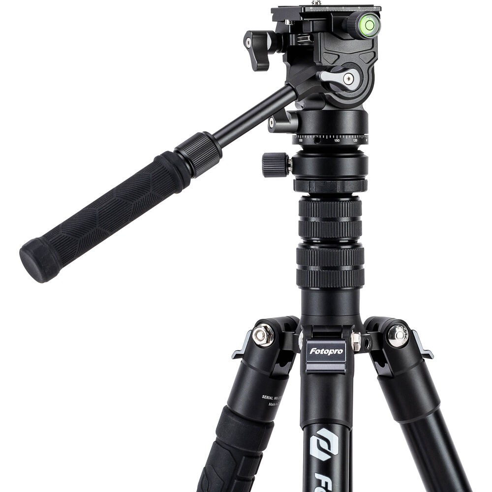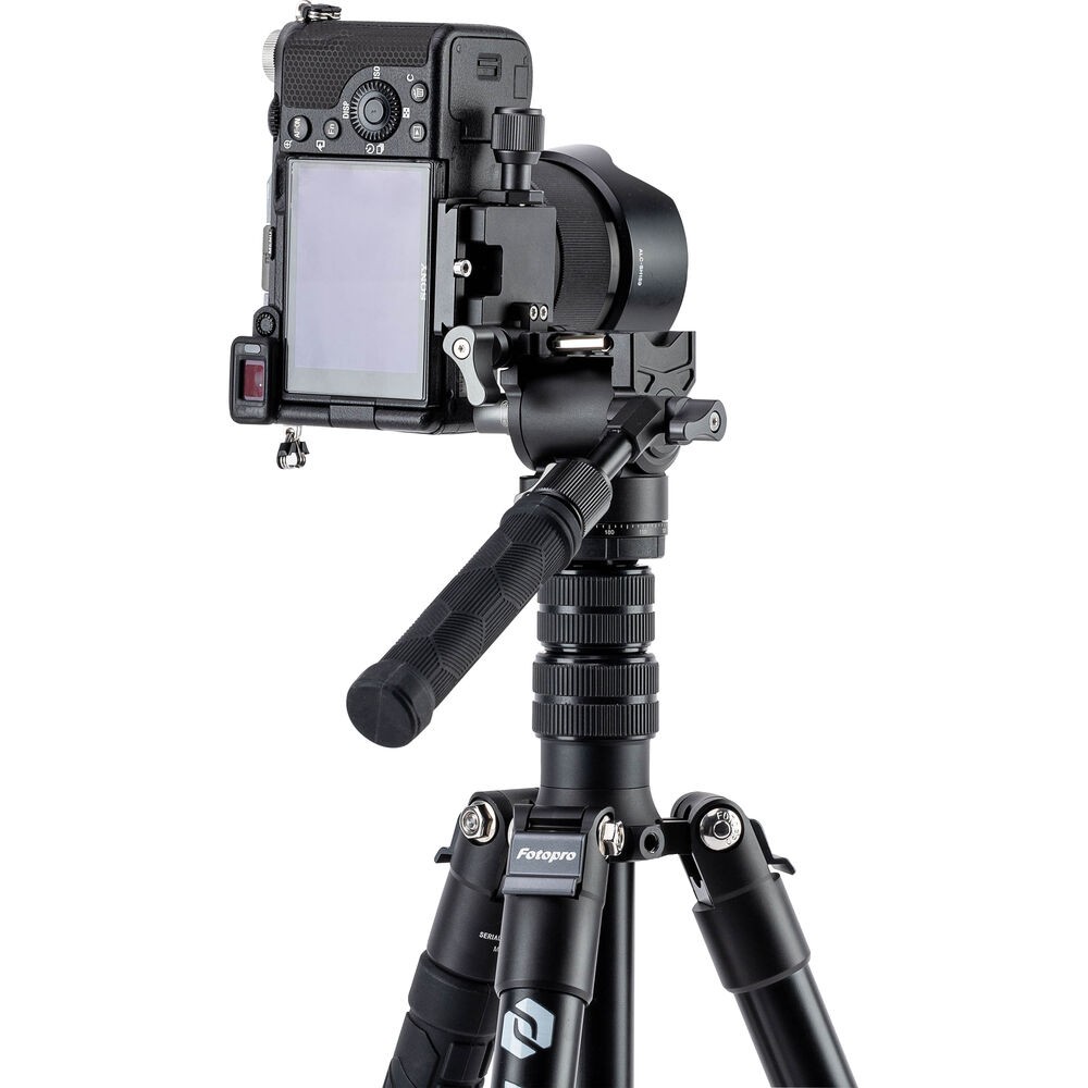Create smooth pan and tilt moves with your small camera rig using the lightweight MH-4L Fluid Video Head from Fotopro. The tiny metal fluid head features a flat 43mm base for mounting onto a separately available compact tripod using its 1/4"-20 base thread, which can also convert to a 1/4"-20 thread with the included screw insert. Its maximum load capacity is 6.6 lb, and it only weighs 14 oz, ideal for travel. A quick-leveling base allows you to quickly level your rig on the MH-4L without requiring adjustments to your tripod legs.