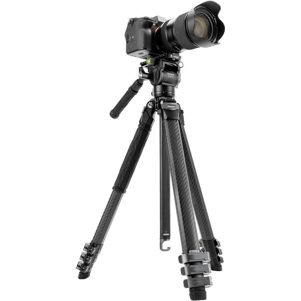 Designed for videographers and filmmakers on the move, the Fotopro Pantour Origin Plus Video Tripod combines convenient portability with dependable stability. It sports three uniquely designed, triangular legs that enhance the tripod's resistance to pressure and torsion, and folds into a compact cylinder that takes up a third less space than collapsed tripods with round tubes. Adjusting the four-section legs is made effortless by the spring-loaded flip locks.