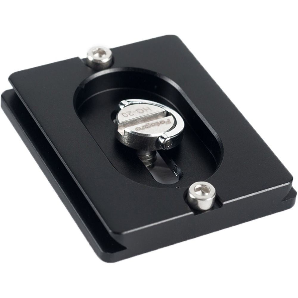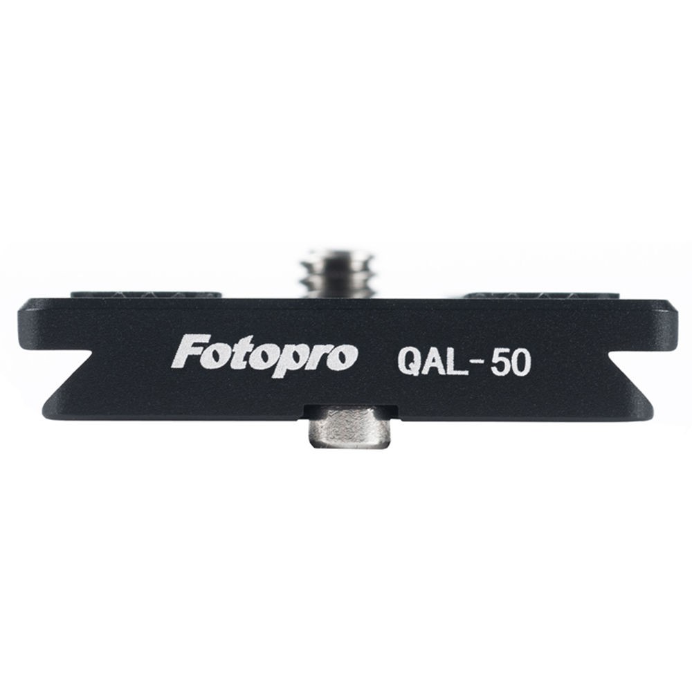 The QAL-50 Universal Camera Quick Release Plate from Fotopro is compatible with Arca-type heads and clamps, and the plate mounts to a camera via its 1/4"-20 threaded camera mount. The rubberized antitwist top prevents the camera from moving while mounted to the plate.