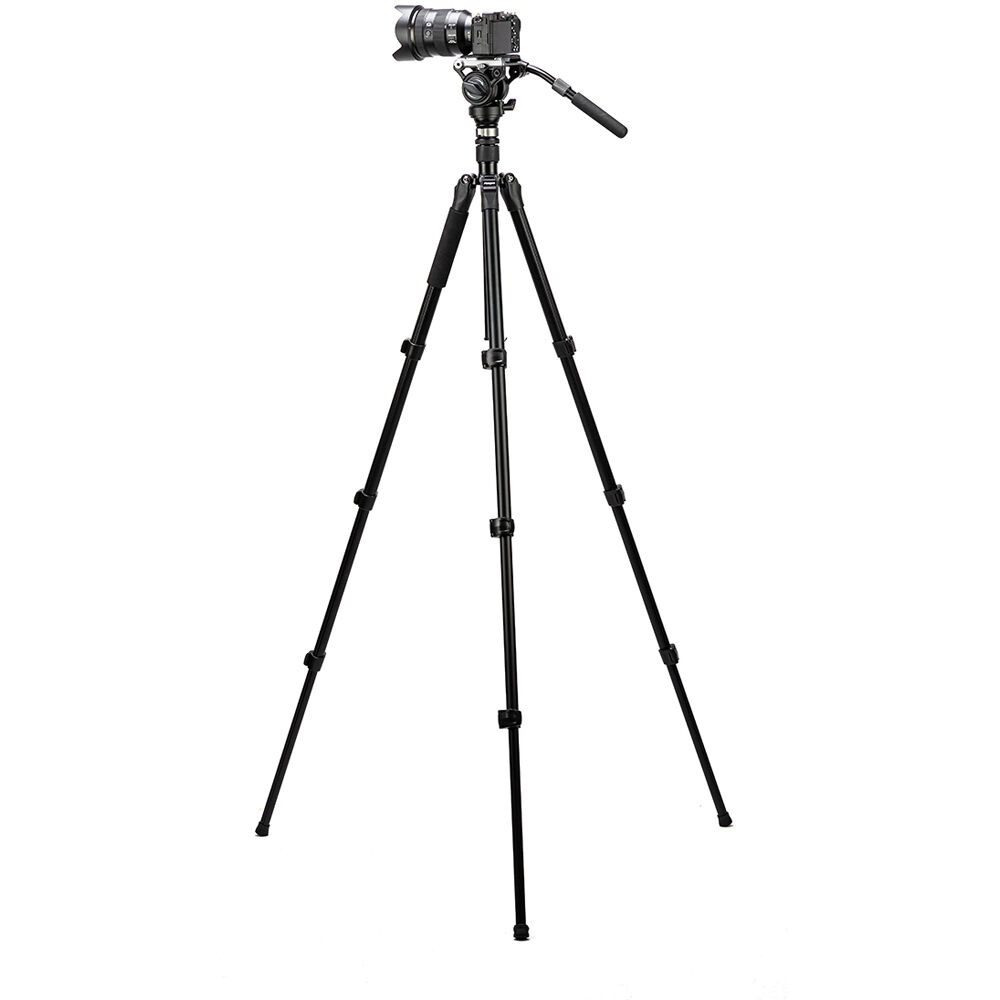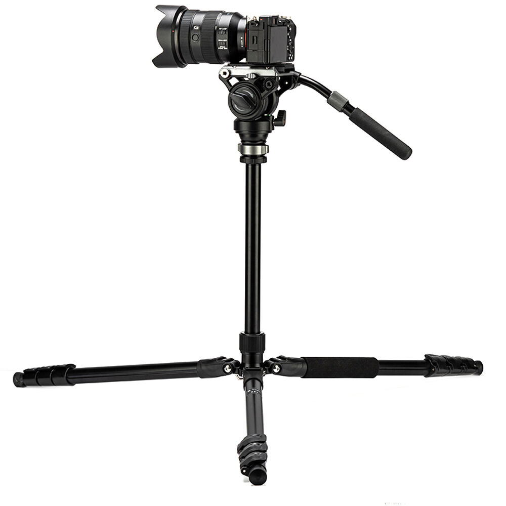 Capture stable images on your travels and achieve smooth tilting and panning with this S5i Pro Heavy-Duty Video Tripod with Fluid Head from Fotopro. With a total weight of just over 4 lb, including its fluid head, the S5i Pro folds down to only 24.4", making transport easy. It can support camera rig loads up to 11 lb.