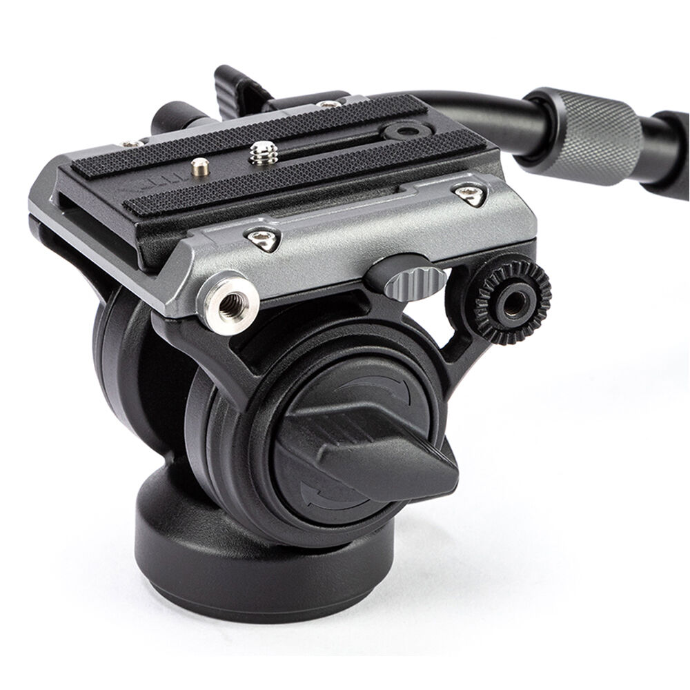 Tilting and panning are smooth using the included padded pan bar, it can pan 360°, and it features a dovetail-type quick release plate with 1/4"-20 and 3/8"-16 mounting screws.