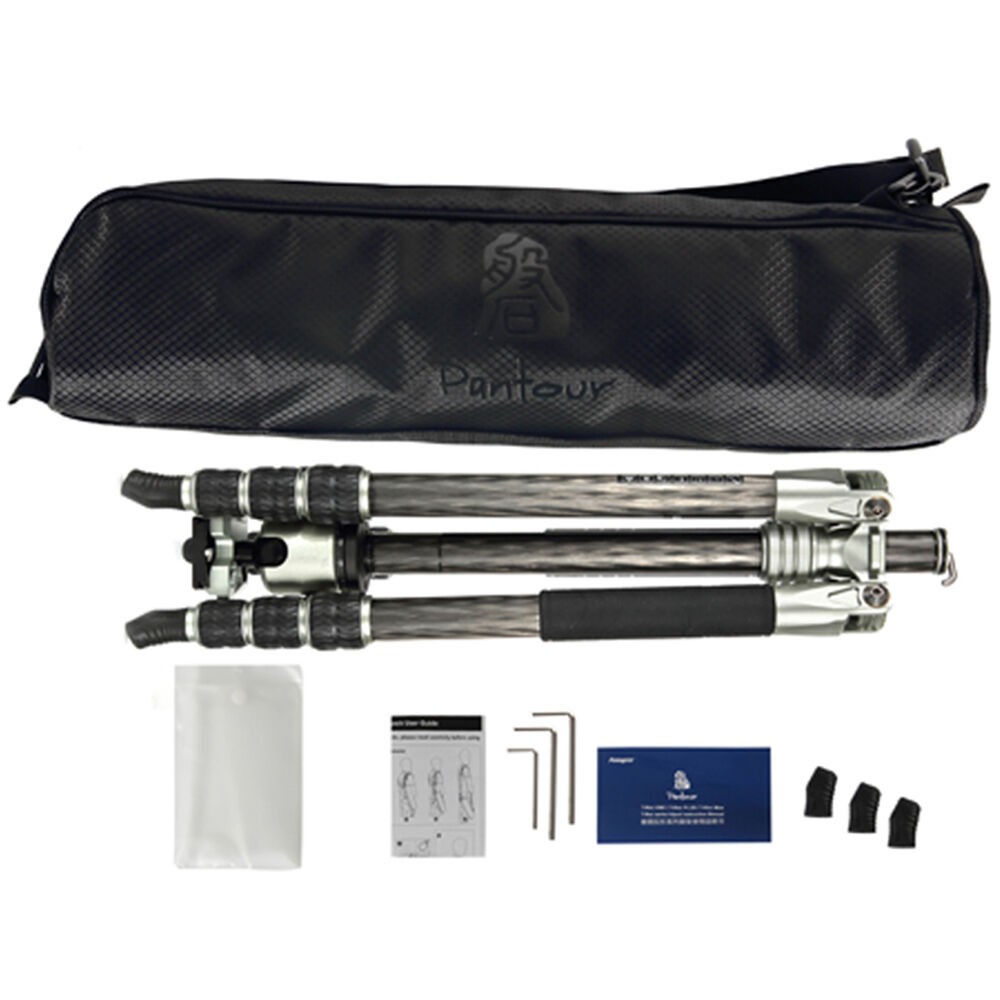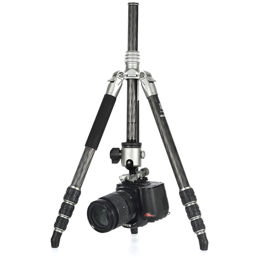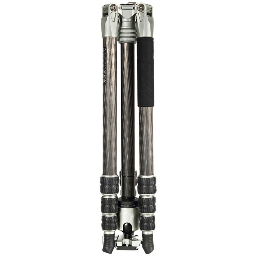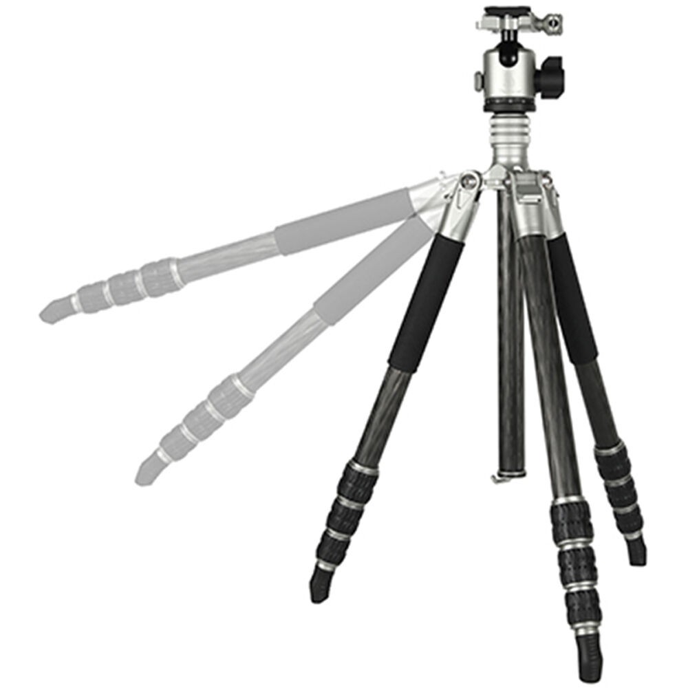 The T-Roc MAX Professional Tripod from Fotopro is a 4-section carbon fiber support with twist locks. The locks disengage to extend the legs along with the rapid center column from a folded length of 19" to a maximum height of 67.3". With its three variable leg angles and its independent leg spread, the 3.9 lb tripod can be set 8.1" off the ground for low-angle or macro photography. The Arca-type ball head, which has a load capacity of 44 lb, has a main locking knob to control the ball movement and a separate pan lock. The included quick release plate has a 1/4"-20 threaded camera mount.