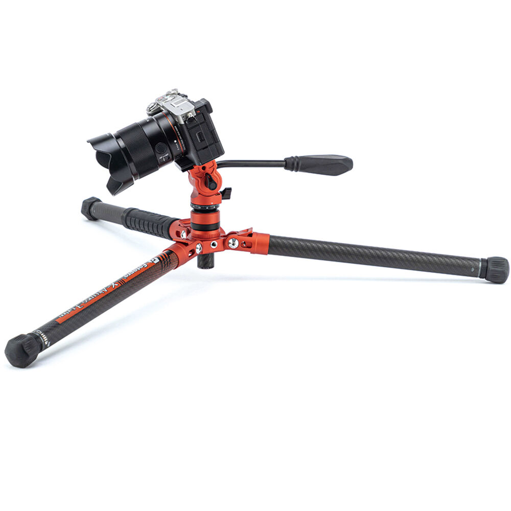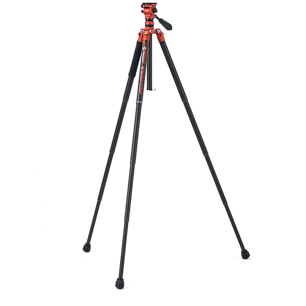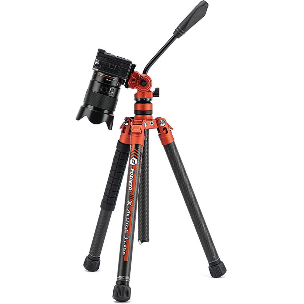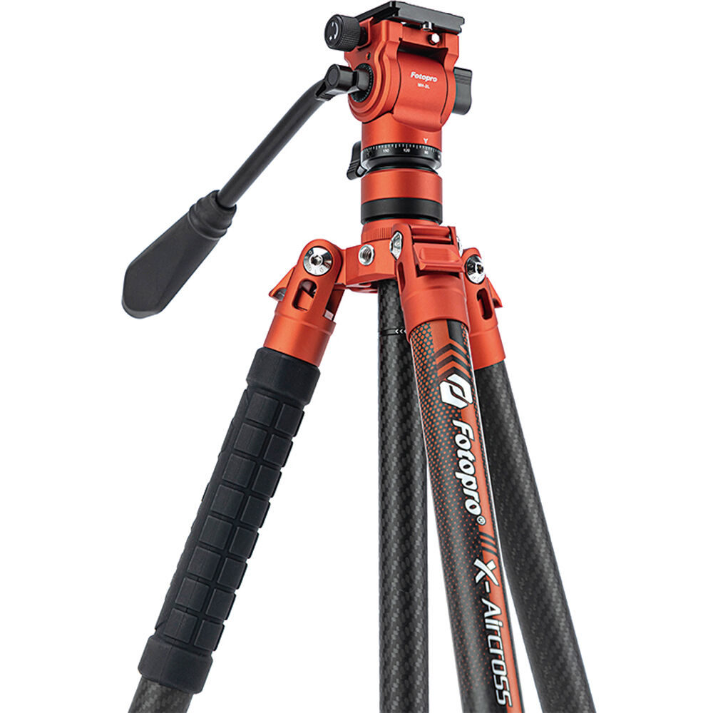 Capture stable images on your travels and achieve smooth tilting and panning with this flame orange X-Aircross 3 Video Carbon Fiber Tripod from Fotopro. With a total weight of 2.4 lb including its fluid head, the portable X-Aircross 3 Video folds down to only 18.2", making it ideal for travel. It can support camera rig loads up to 11 lb.
