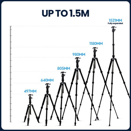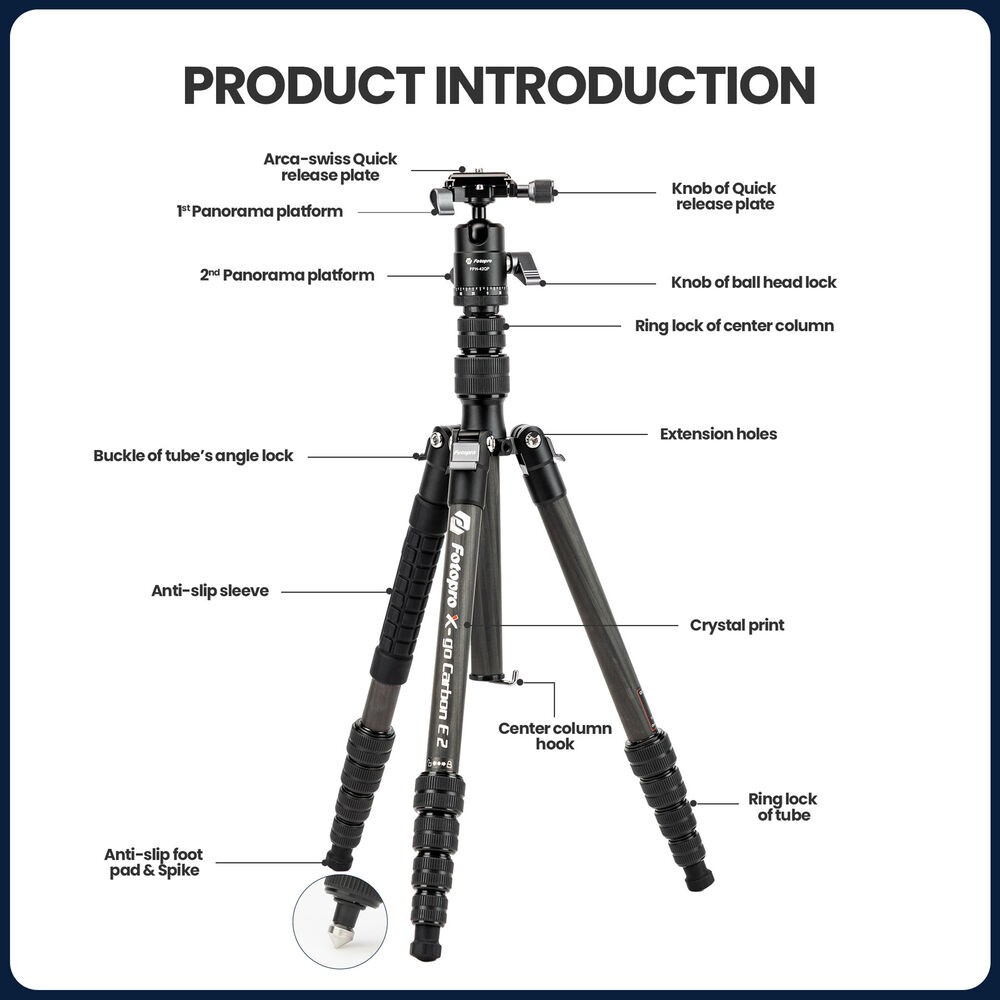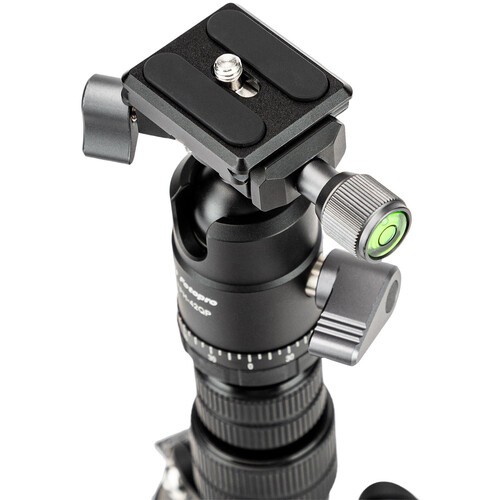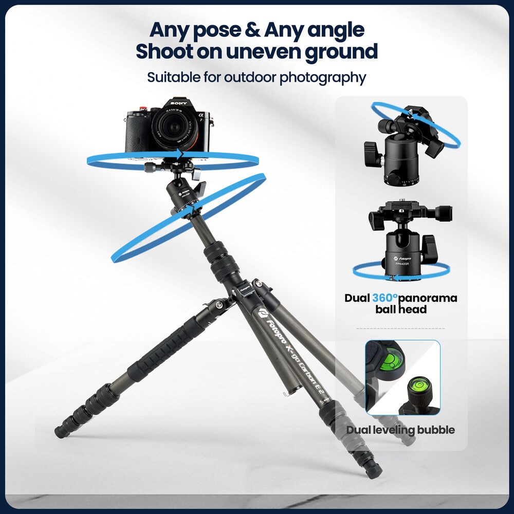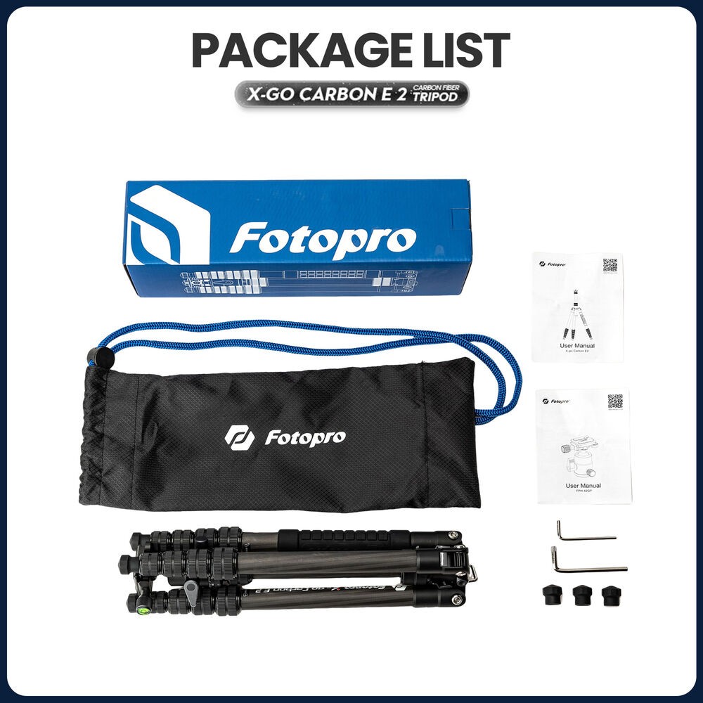 Delivering dependable stability in a portable package, the Fotopro X-go Carbon E 2 Carbon Fiber Tripod is the ideal tool for on-the-fly photography. The Carbon E 2 features a lightweight, 2.2 lb carbon fiber build, a maximum load capacity of 17.6 lb, a working height range of 13.6 to 59.9", and a travel-friendly folded length of 14.2". The FPH-42QP ball head includes pan/tilt functionality for flexible setups, as well as independent 360° panoramic movement for precise horizontal control.