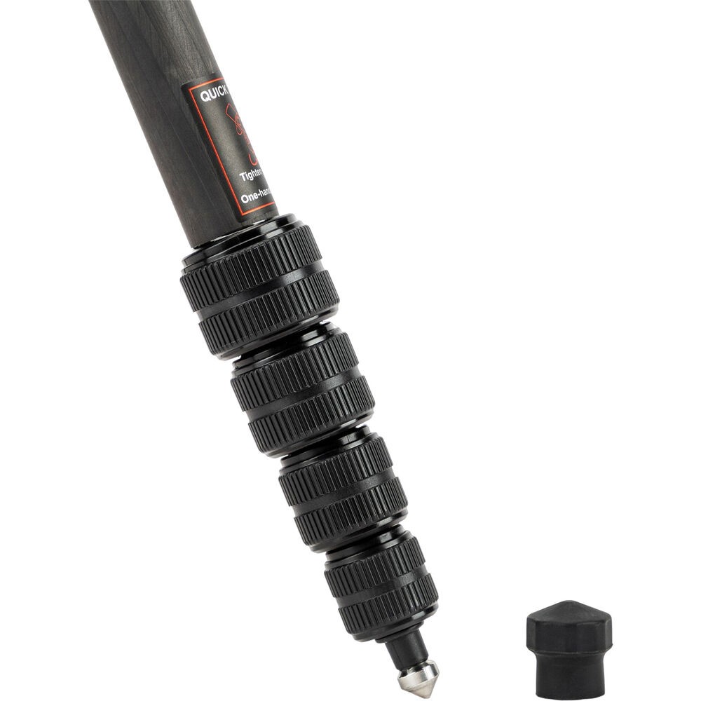 Twist locks on the five-section legs and two-section center column make height adjustments intuitive and convenient. The center column can be inverted for low-angle shooting, and one leg can detach and function as a monopod. Spiked metal feet provide a suitable grip for rugged terrain and adverse weather conditions, while included rubber foot pads allow interior shooting without leaving a mark. Camera attachment is fast and easy with the Arca-type quick release mounting plate.