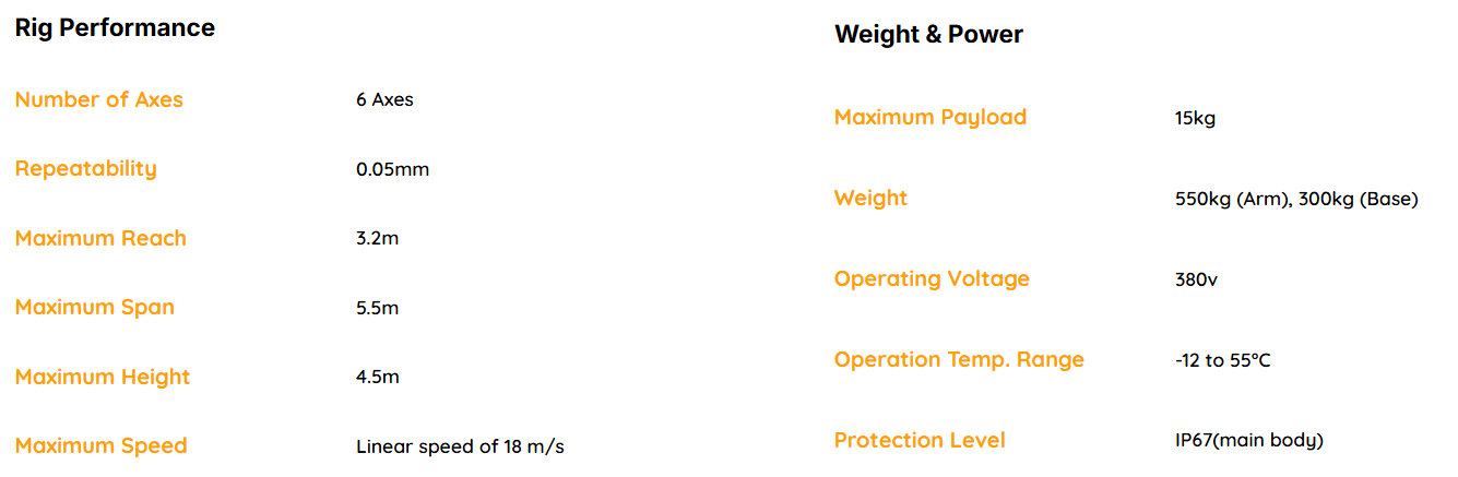 With its extensive reach, fast speeds, and wide range of applications, the G-ka Motion Control is widely used in film, television dramas, web dramas, TV commercials (TVCs), music videos (MVs), and educational settings. It is particularly suitable for equipment companies, high-end production companies, television stations, and XR virtual production companies.