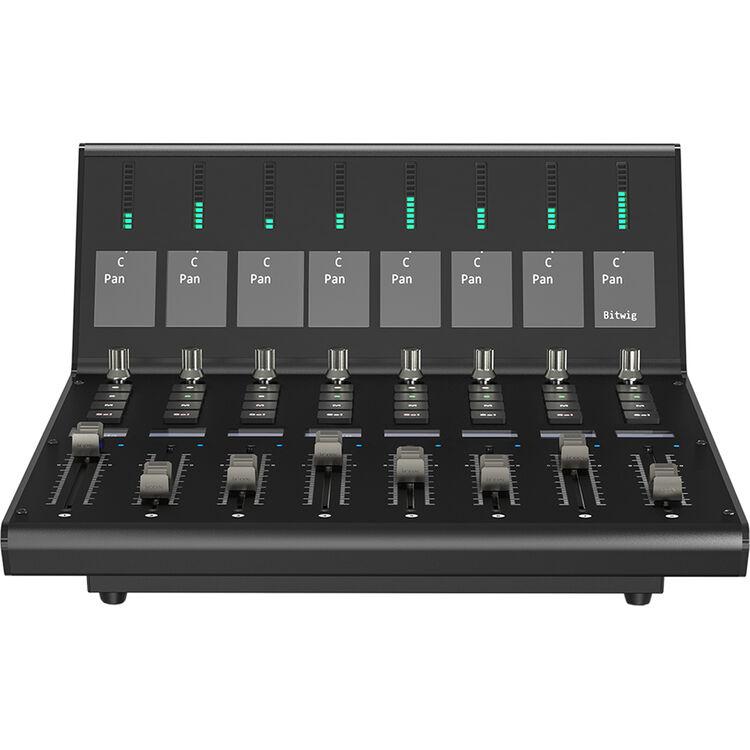 Add additional tactile channel control to your V1-M DAW control surface with the V1-X DAW Control Expander from Icon. This 8-channel extender module provides an additional eight 100mm faders and eight encoder knobs, providing hands-on access to additional channels quickly and easily without having to change banks as often. Visual feedback is provided via several displays: a 2" TFT screen shows main channel information, the LED meter bridge displays levels, and a 1.14" screen for each channel shows additional DAW-dependent information.