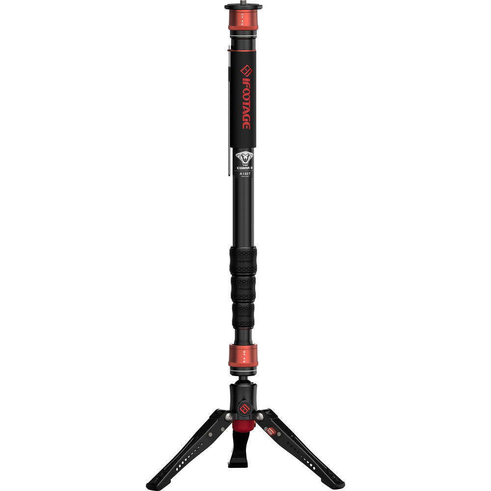 The Cobra 3 Aluminum Monopod with Mini Tripod Base from iFootage is useful for capturing a variety of shots, from low to high angles. It can be used for action, sports, travel, wildlife, and concert photography, plus vlogging and more. This lightweight, 4-section aluminum monopod features twist-lock joints, and has a maximum height of 71.7". The top of the monopod features a quick disconnect collar system that can be unlocked and locked in less than a second.