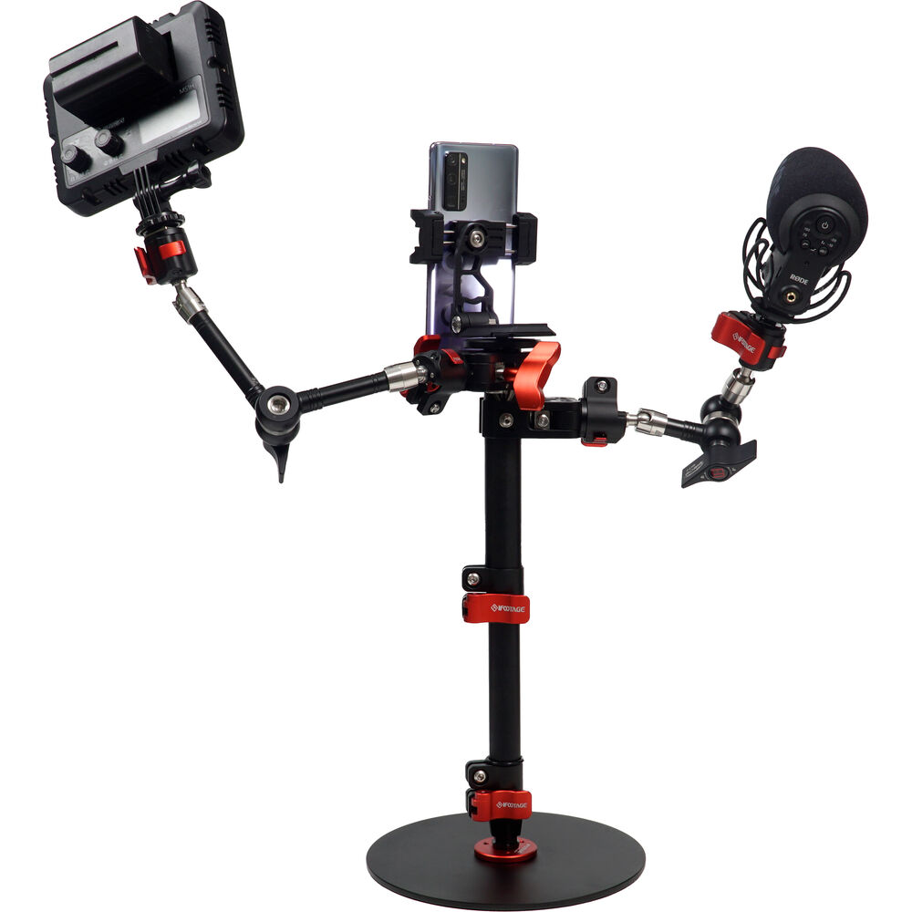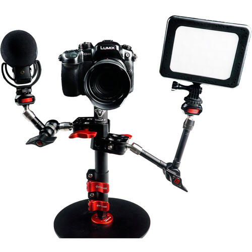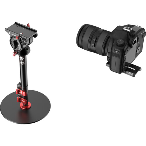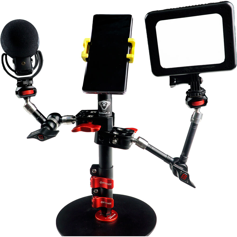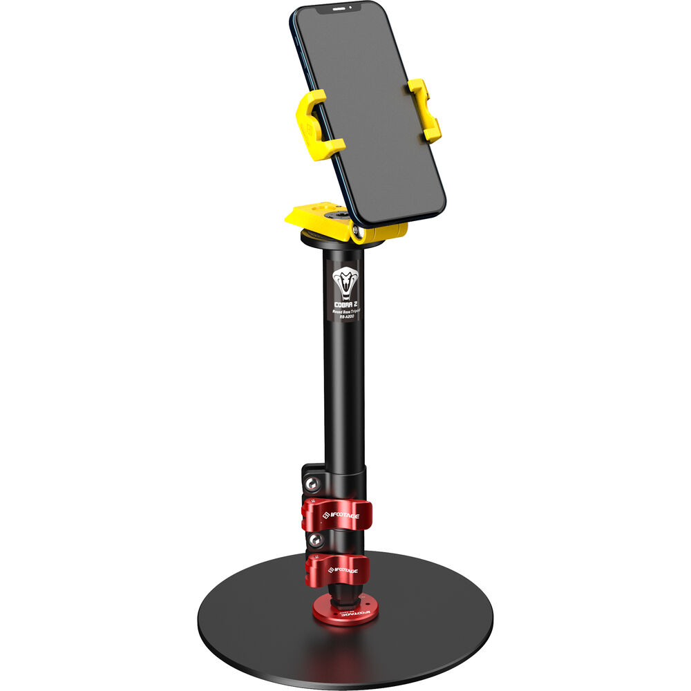 The RB-A200 Cobra 2 Round-Base Monopod from iFootage is a round-based monopod designed for desktop, office, studio, or for anywhere else where there is a suitable flat, solid surface. It offers a simple and neat solution for supporting cameras, microphones, lights, and monitors in place of cumbersome conventional stands and tripods. The RB-A200 is 22" tall, aluminum desktop solution for presenters, vloggers, influencers, streamers, and anyone else providing social media creative content. It has a maximum height of 22", and the round base plate has a fabric non slip, non scratch under carriage that will reliably and solidly support up to 22 pounds. The aluminum center support features flip-lock joins for rapid setup and adjustment.