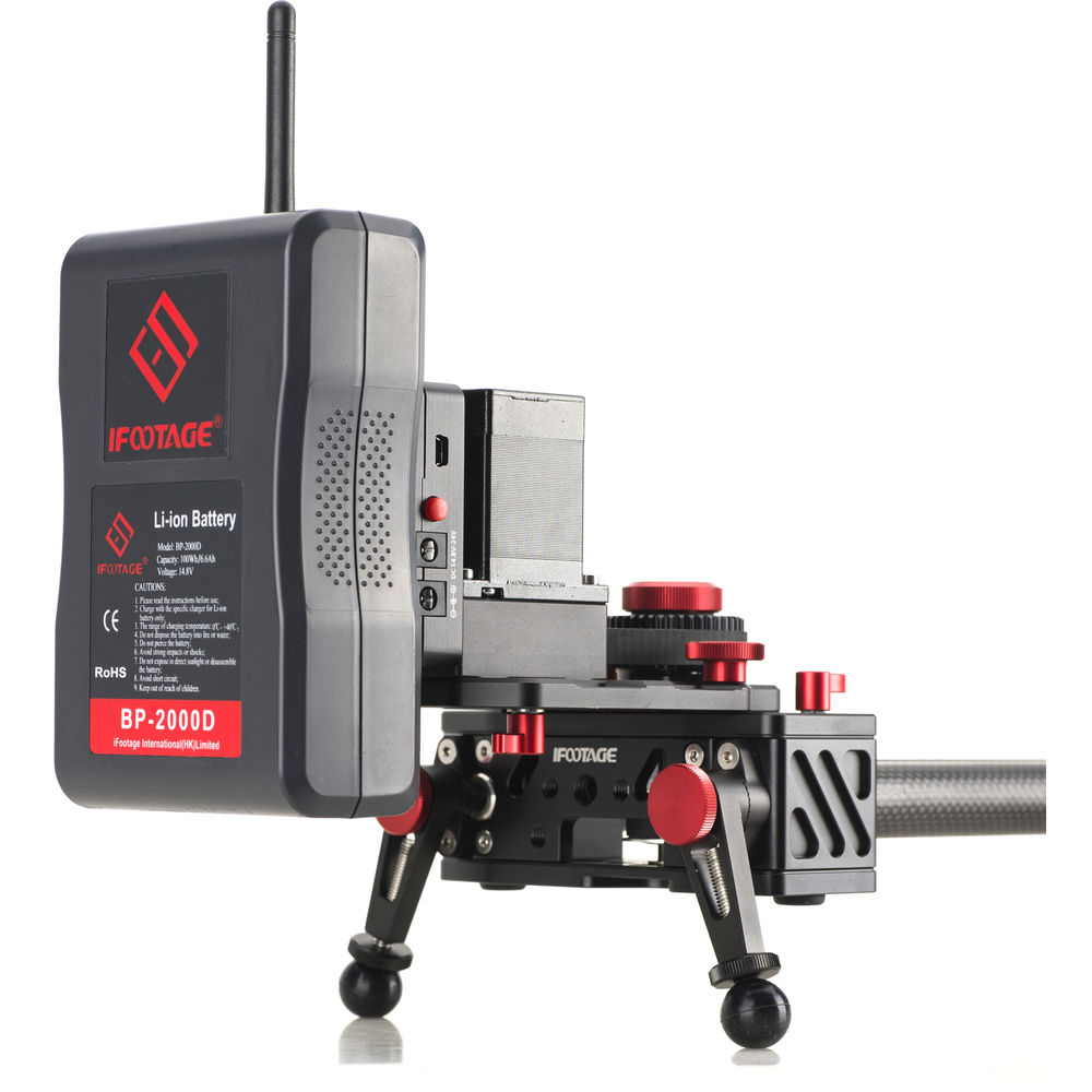 The included 95W battery attaches to the slider and will run the controller for up to 12 hours with continuous shooting, or up to 16 hours in time-lapse mode. The compact S1A1 Motion Control System includes seven camera shutter cables, a battery charger, an antenna, and a carrying case. Camera rigs weighing up to 17.6 lb can be supported by the system.