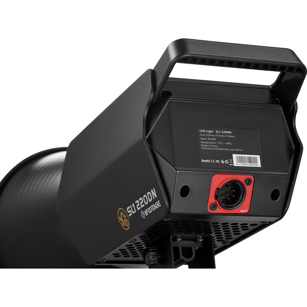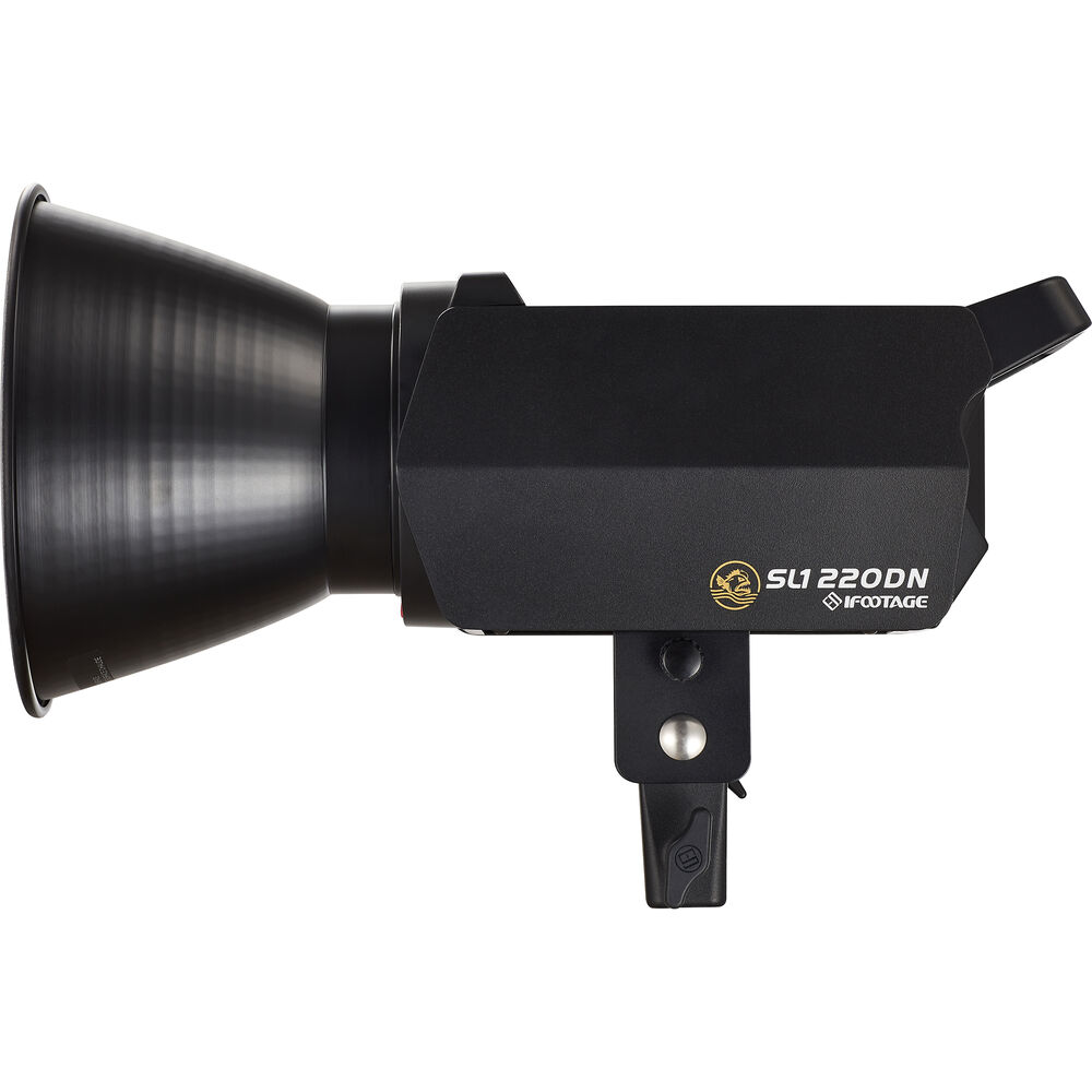 The SL1 220DN Daylight LED Light from iFootage is a 5600K LED fixture with 42,000 lux output at 3.3' when used with the included 60° reflector. It provides portable, powerful, and adaptable lighting for your video productions while drawing just 220W of power. Featuring superior color spectrum coverage, the light offers a high CRI rating of 98, a TLCI of 99, an SSI of 84, and a TM-30 of 97 for accurate color reproduction. It has eight special effects including fireworks, strobe, paparazzi, explosion, pulsing, faulty bulb, lightning, and welding.