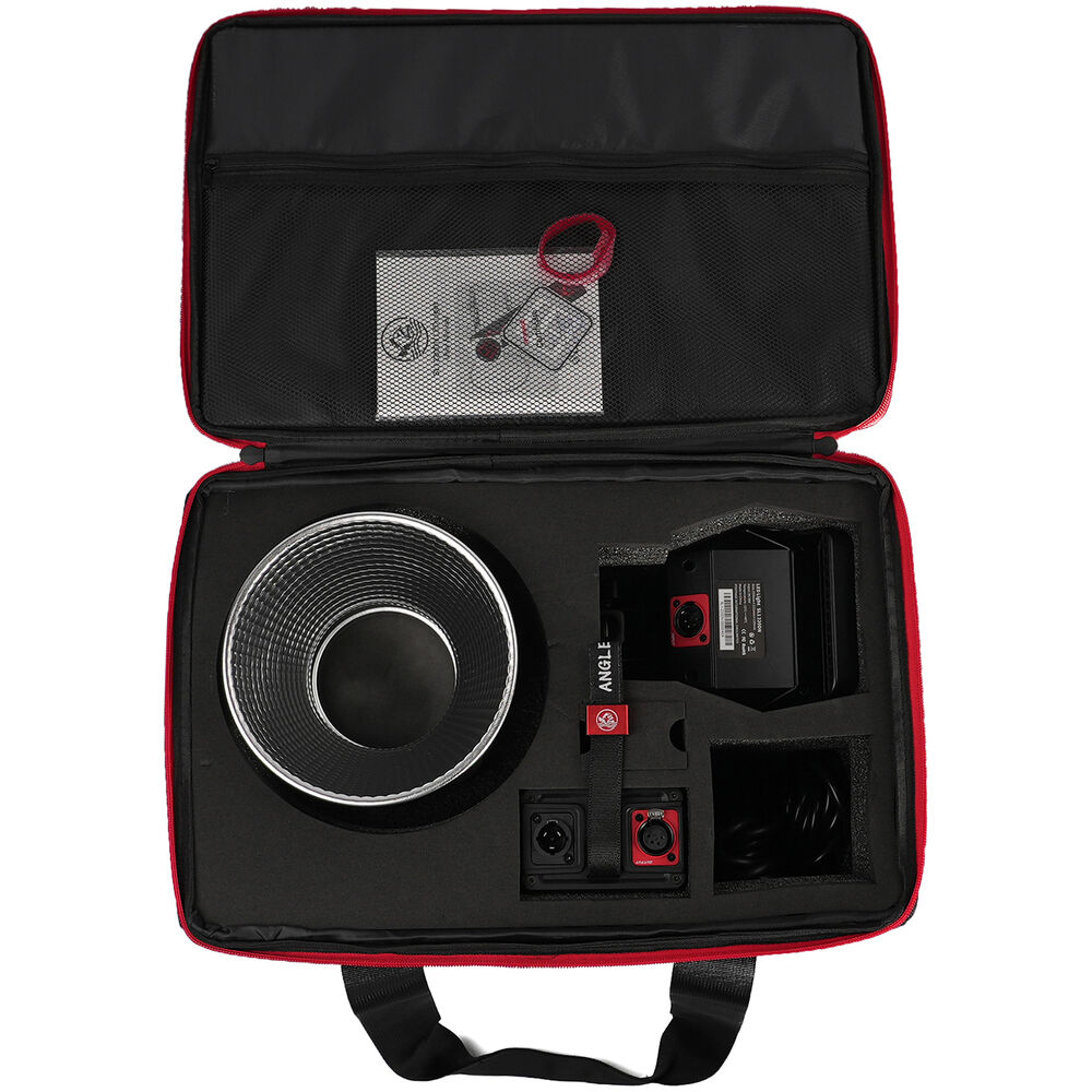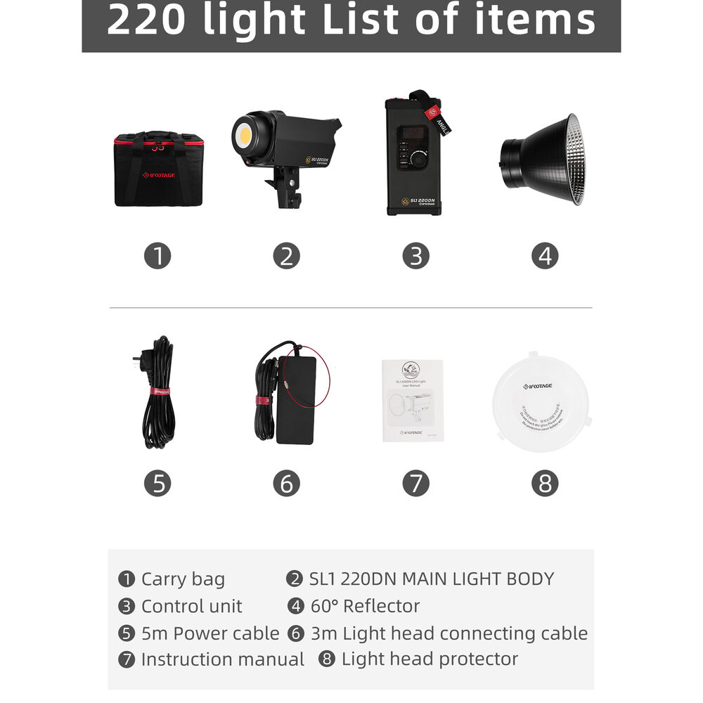 The SL1 220DN has a control box with an OLED display for effortless and intuitive adjustments but can also be controlled from your phone via Bluetooth with the Lumin app. The external ballast features the power input and a DMX connection for a fast, efficient, and reliable signal transfer to your light. The light is compatible with standard and mini Bowens accessories, so there's no need for adapters. A carry bag is included for storage and transportation.