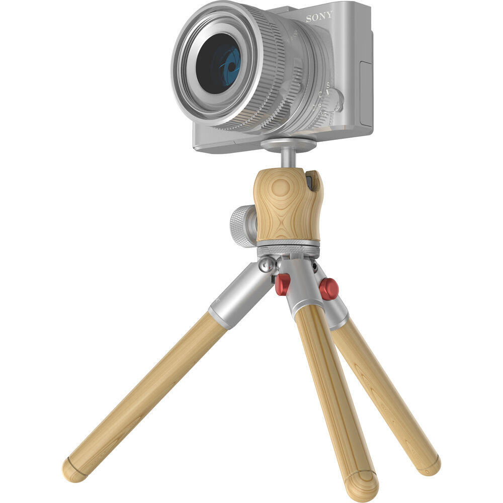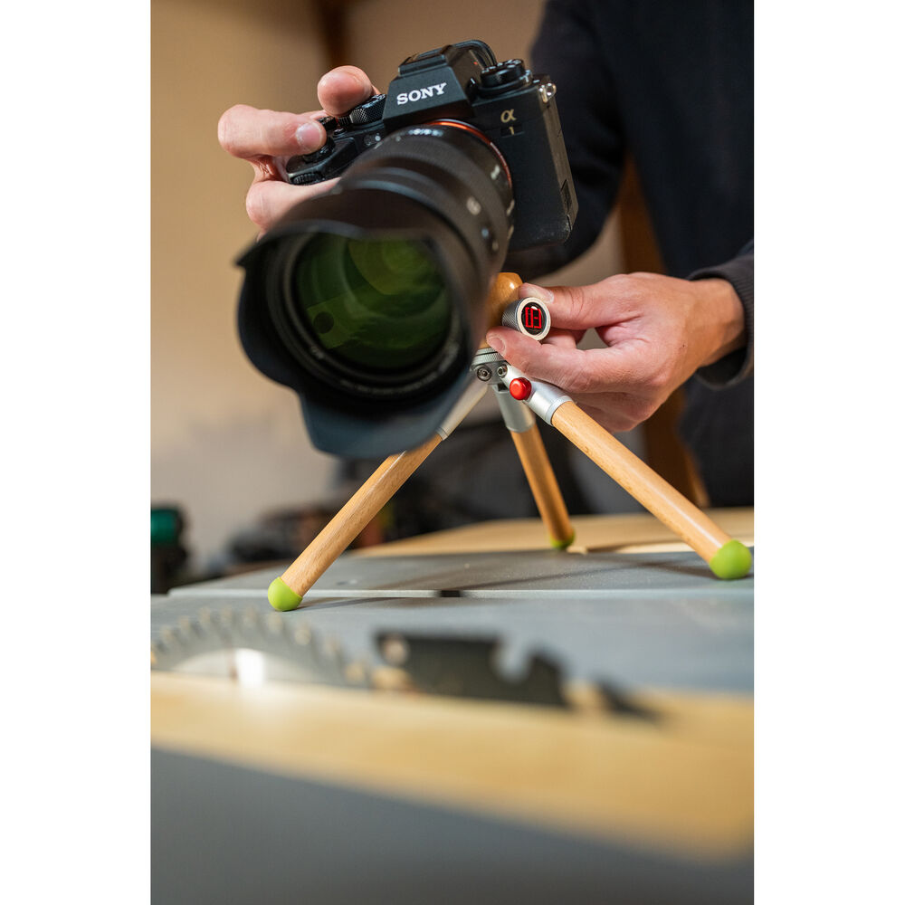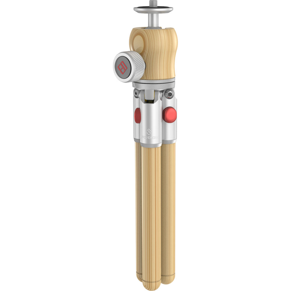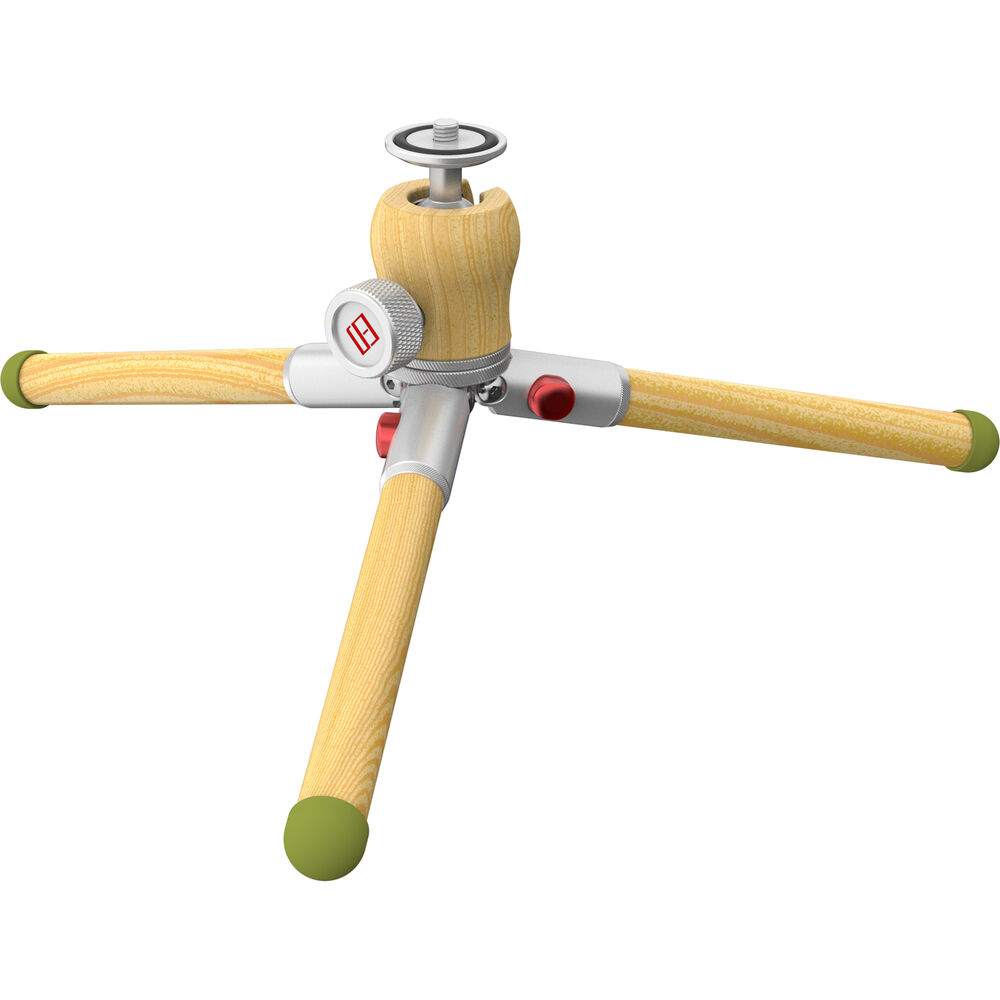 The Timberpod Mini Tripod in beech wood with a silver metal base from iFootage is an elegant yet versatile mini tripod made of carefully selected and polished hardwood, coated with mineral oil for a finish that is smooth and warm to the touch. The 1-section legs open to two positions, or can be held together to act as a selfie stick or camera grip for vlogging. It features an integrated ball head with a load capacity of 4.4 lb, and a maximum height of 71 inches.This attractive tripod is made of light beech wood and a metal base with an elegant silver finish.