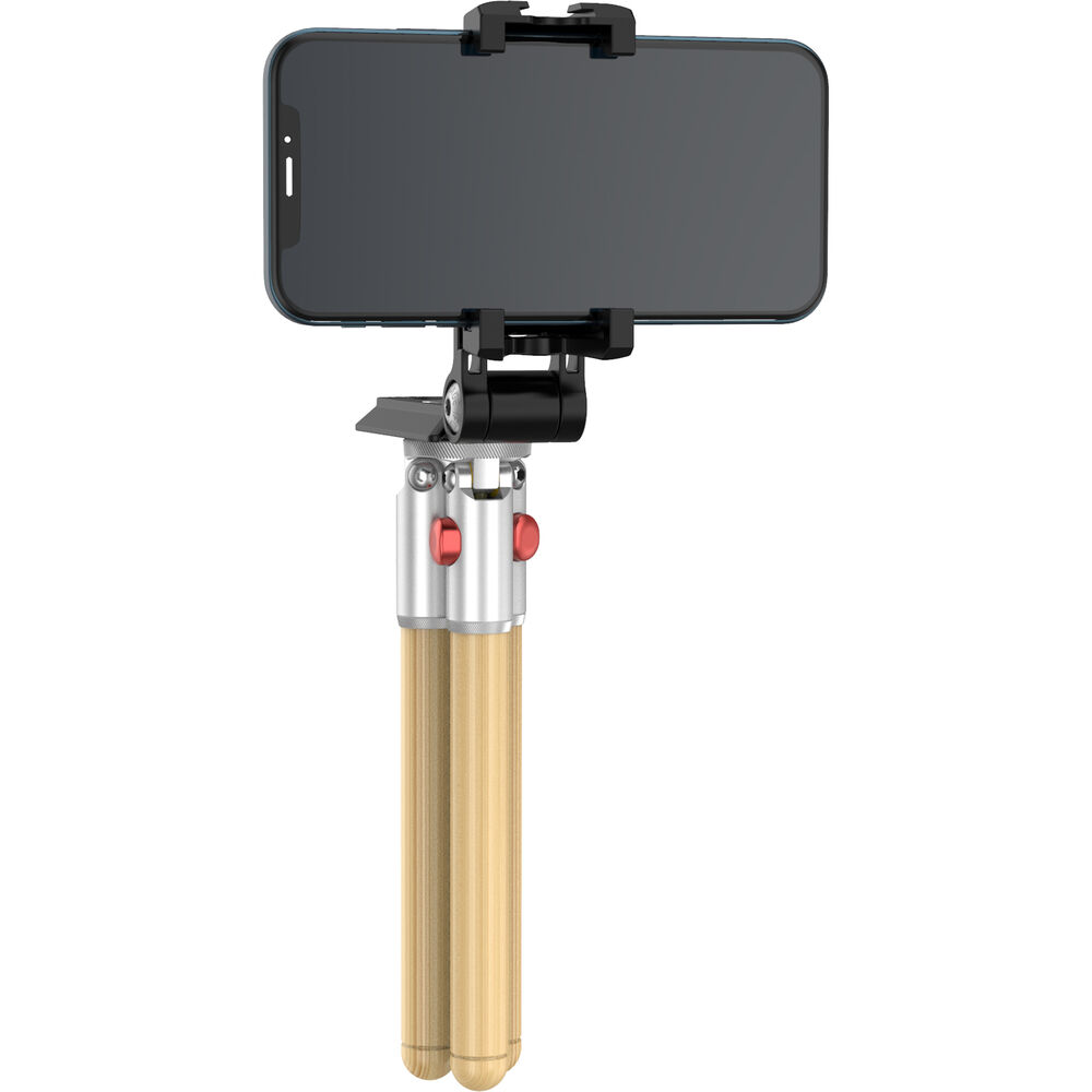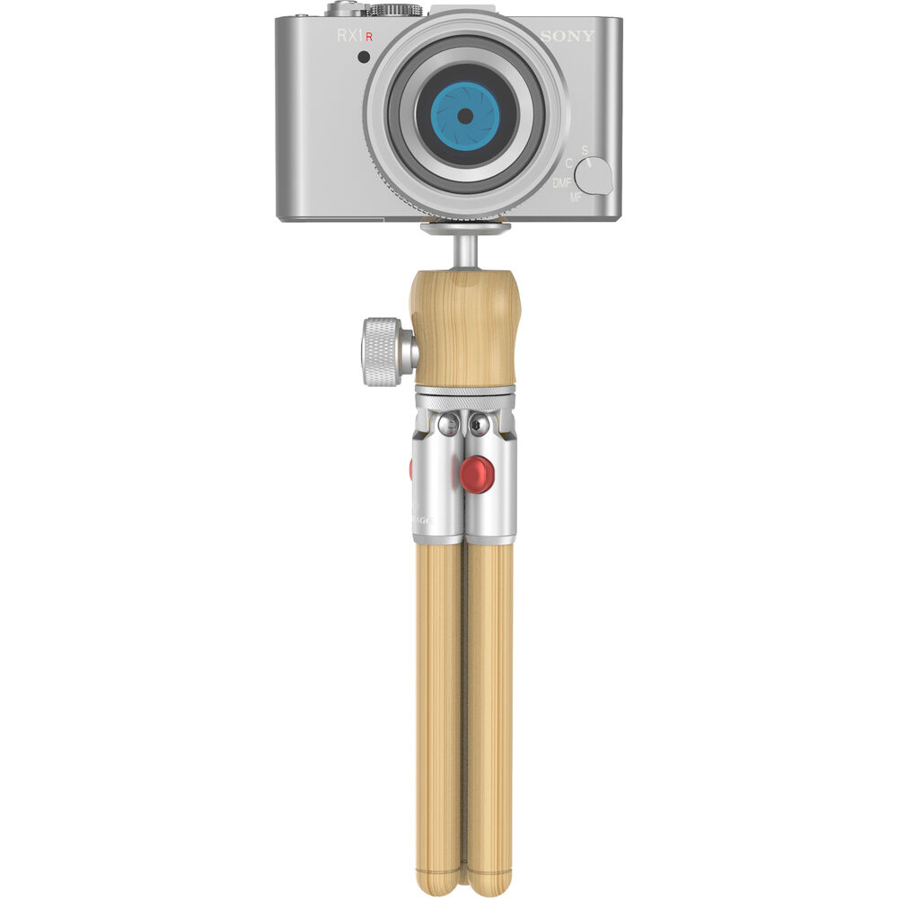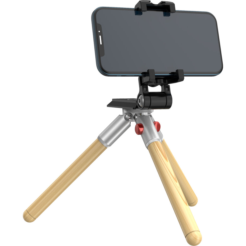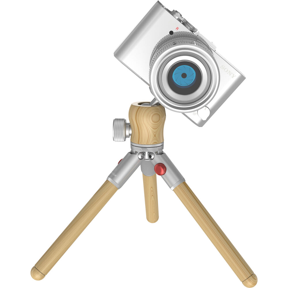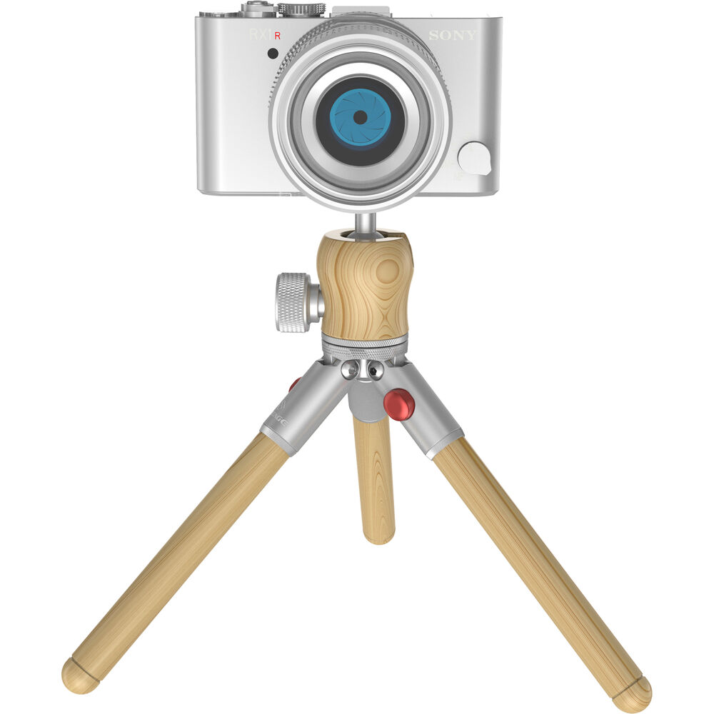 The Timberpod Mini Tripod in beech wood with a silver metal base from iFootage is an elegant yet versatile mini tripod made of carefully selected and polished hardwood, coated with mineral oil for a finish that is smooth and warm to the touch. The 1-section legs open to two positions, or can be held together to act as a selfie stick or camera grip for vlogging. It features an integrated ball head with a load capacity of 4.4 lb, and a maximum height of 71 inches.This attractive tripod is made of light beech wood and a metal base with an elegant silver finish.