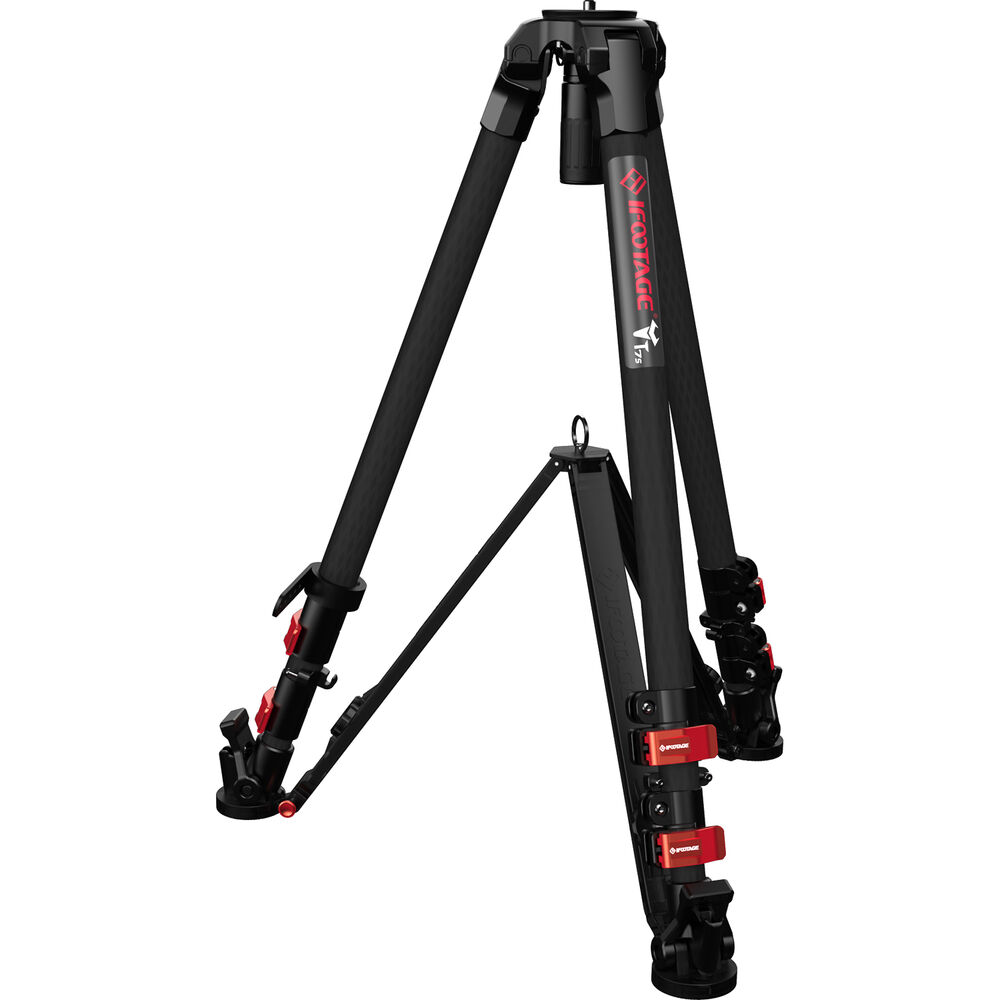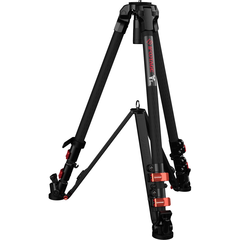 Lightweight and easy to use, yet able to support up to 88 lb, the iFootage Wildbull T7S Carbon Fiber Tripod features an updated 75mm half ball to flat base adapter with a quick release tie-down for faster mounting and unmounting of the adapter. Suitable for use with sliders, flat base fluid heads, and jibs, the tripod is constructed from carbon fiber to be light, strong, and corrosion resistant. The T7S extends from 28 to 59", with a minimum height of 8" at maximum spread.