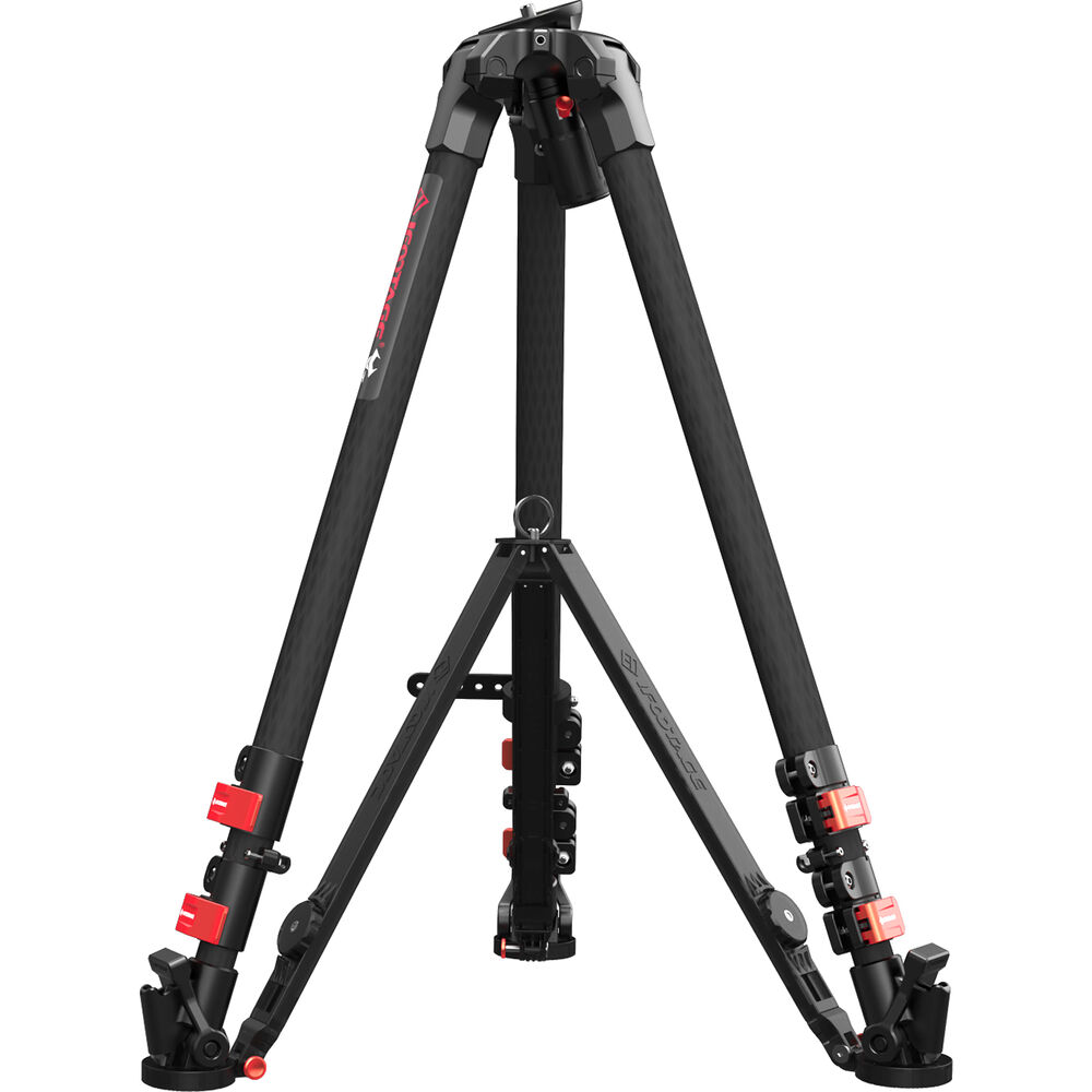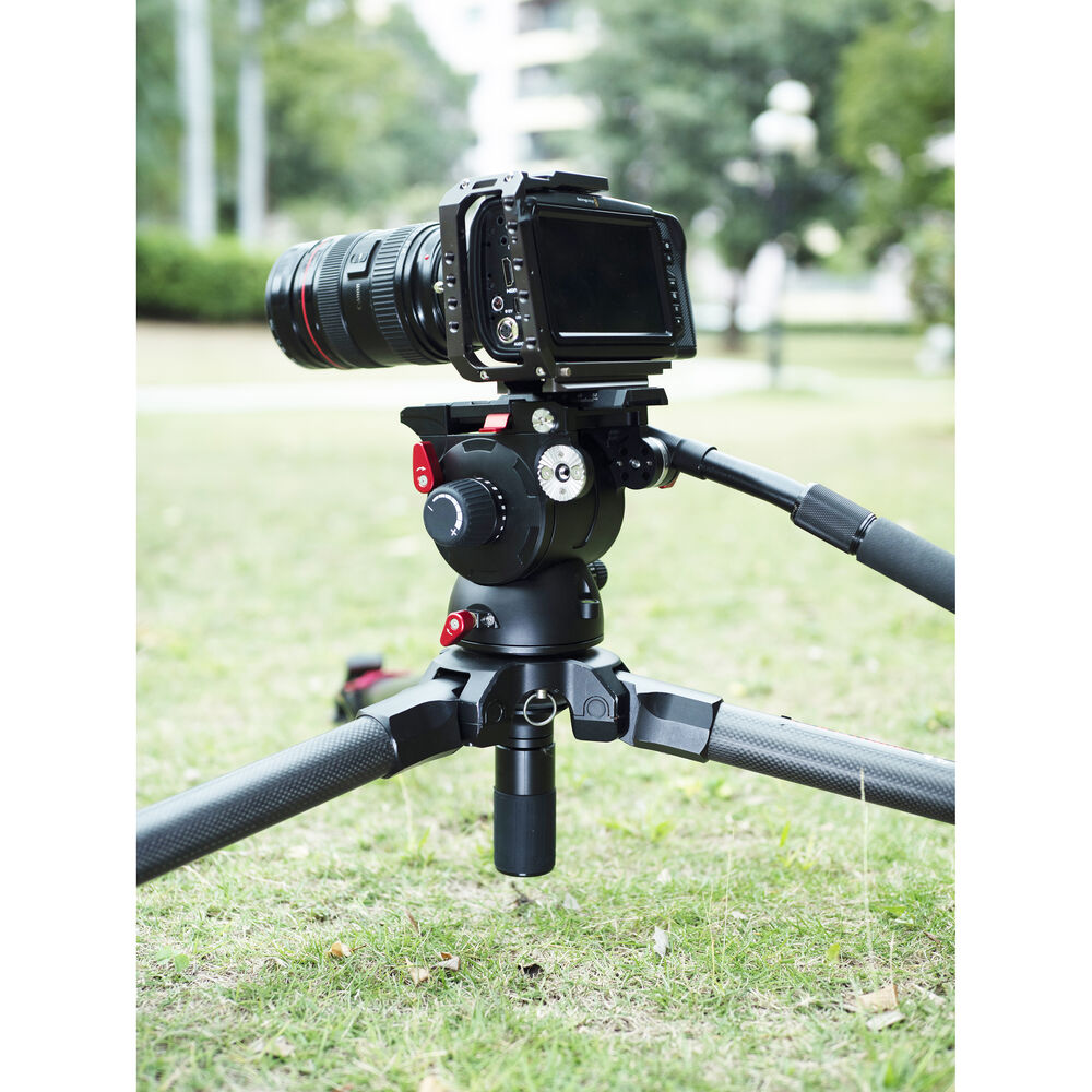 Features include locking levers on the legs for one-handed height adjustments, a half ball 75mm adapter for use with flat base heads, and an adapter tie-down. The carbon fiber legs have spiked feet for use on soft terrain and removable rubber foot pads for hard and delicate surfaces. The included ground spreader can also be positioned midway on the Wild Bull T7S, a handy feature when working on rocky or uneven terrain. Use the load hook to attach a sandbag or even your backpack as a counterweight. An integrated rubber belt enables you to strap the tripod legs together for easier and safer transporting.