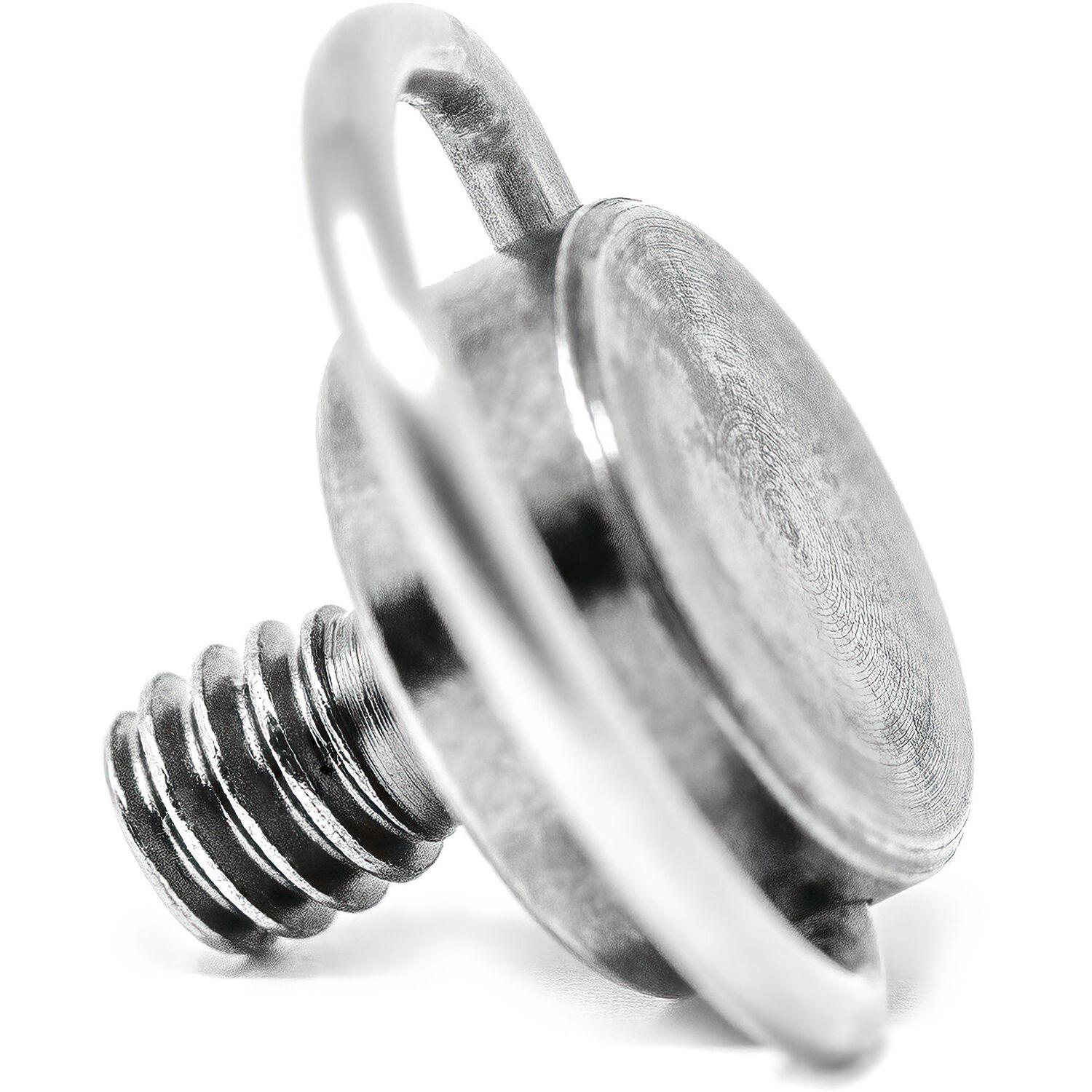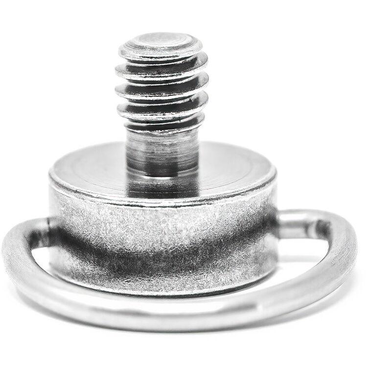 Add a strap to your camera cage or rig with this 1/4"-20 Screw Mount with Strap Loop from Kondor Blue. The durable metal mount features a standard 1/4"-20 threaded screw that can mount onto any 1/4"-20 thread on your cage or rig, and it features a loop on a hinge that allows you to insert a small, separately available strap to add additional security for your gear.
