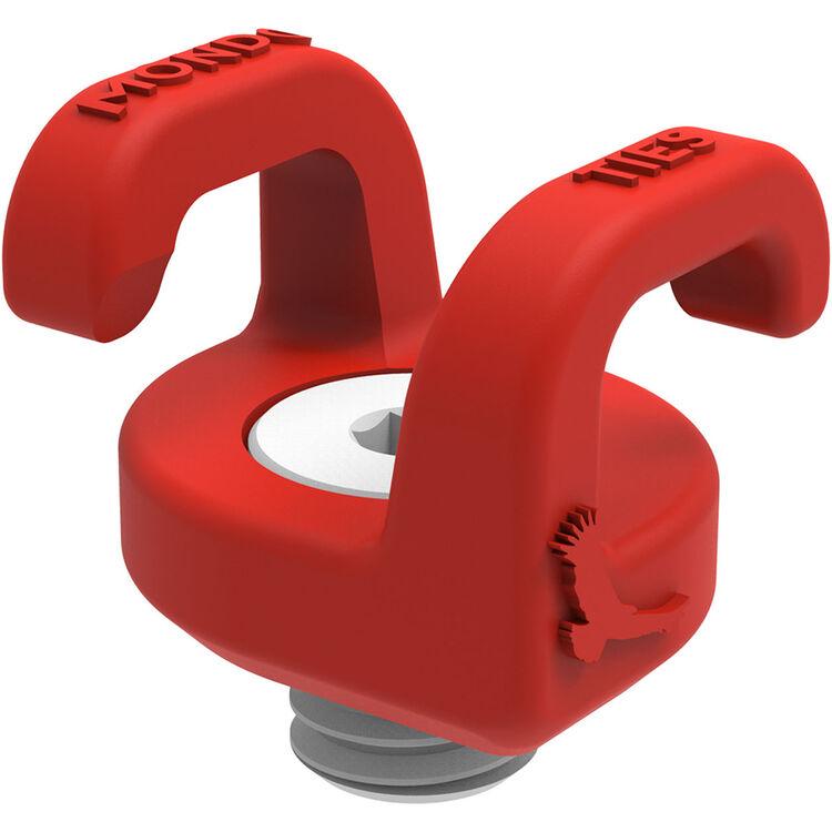 The Cardinal Red 3/8"-16 Mondo Ties Cable Management Clips from Kondor Blue are a pack of four cable ties, each with a 3/8"-16 screw for mounting onto most standard camera rigs and other equipment with 3/8"-16 threaded holes. The ties can route three to six cables in any direction and support up to 15 lb of force. A small carrying case is included for transport and storage.