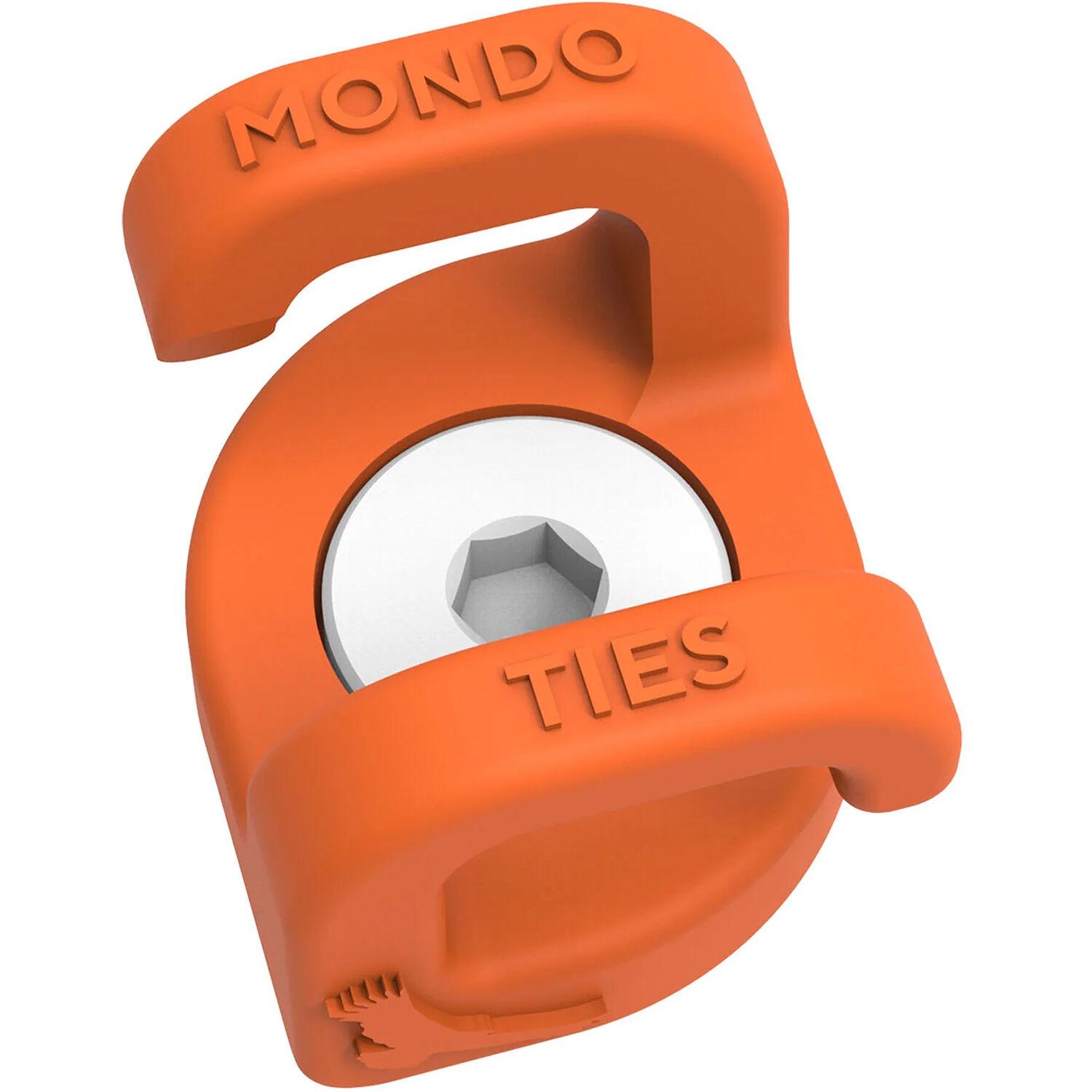 The Phoenix Orange 3/8"-16 Mondo Ties Cable Management Clips from Kondor Blue are a pack of four cable ties, each with a 3/8"-16 screw for mounting onto most standard camera rigs and other equipment with 3/8"-16 threaded holes. The ties can route three to six cables in any direction and support up to 15 lb of force. A small carrying case is included for transport and storage.