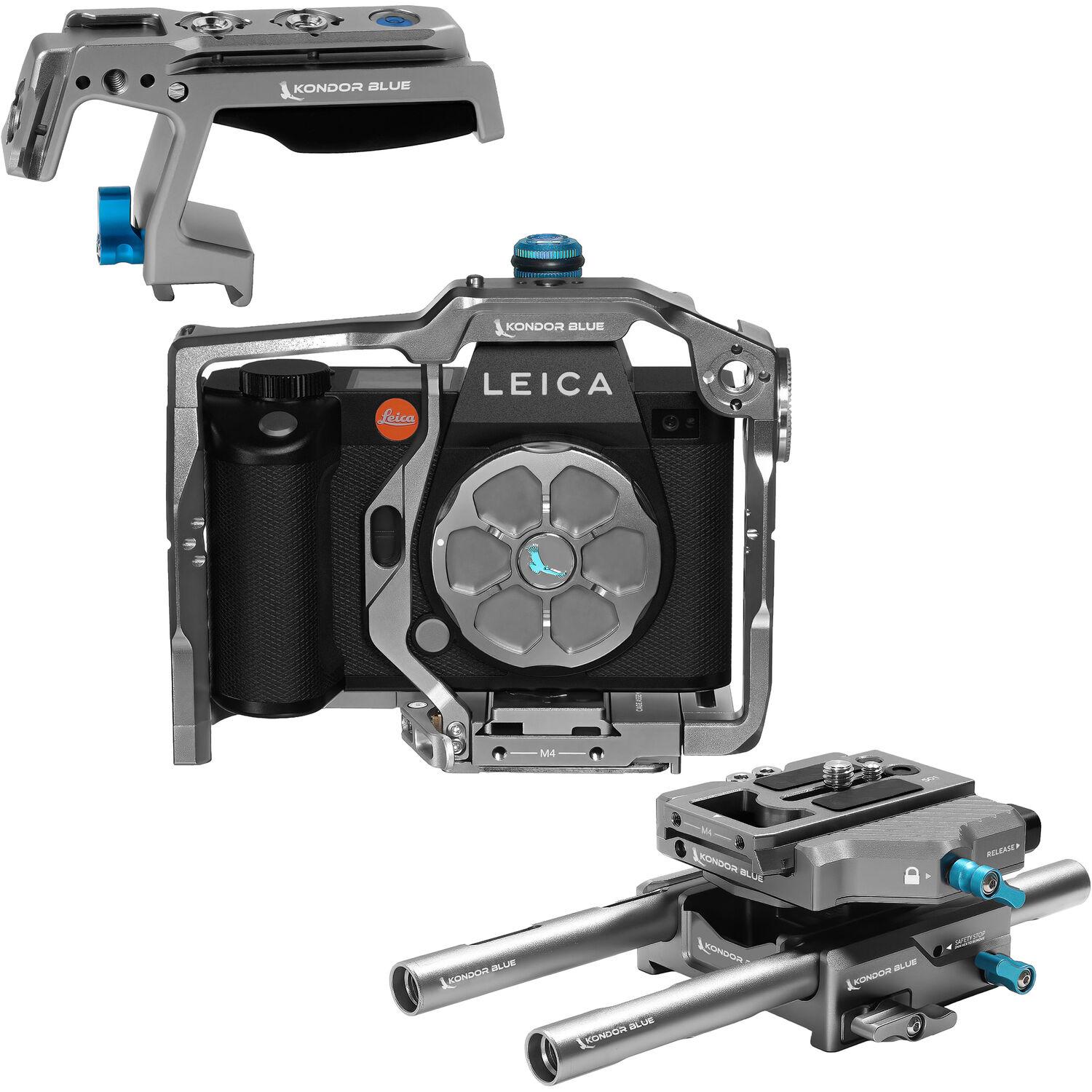 Protect your Leica camera and enhance its possibilities for mounting accessories on it with this space gray Cage with Top Handle for Leica SL2S/SL2/SL from Kondor Blue. Employing multiple points of contact, the cage is form-fitted to mount solidly on the Leica SL, SL2, or SL2S to prevent wiggle while adding over 30 threaded 1/4"-20, 3/8"-16, and M4 holes for a wide variety of accessory mounting points. The cage comes with a top handle, and built-in NATO rails provide right-side, left-side, and top plate mounting options, and the included HDMI and USB-C cable clamp ensures your cables remain securely tethered to your camera at all times. All of the camera's functions remain accessible with the cage on the camera, and you won't need to remove the cage, even when swapping out batteries.