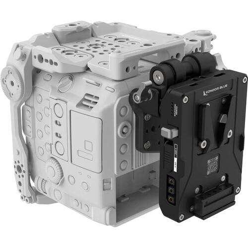 Upgrade the power distribution abilities of a Canon EOS C400 camera rig with this V-mount Kondor Blue Battery Plate Kit. The swiveling battery mounting system provides bidirectional D-Tap ports and USB-C PD, attaching to the C400 via the included back plate. Featuring two 1" 15mm rods and two anti-twist M12 rod mounts, the kit is a stable, adaptable power delivery platform.
