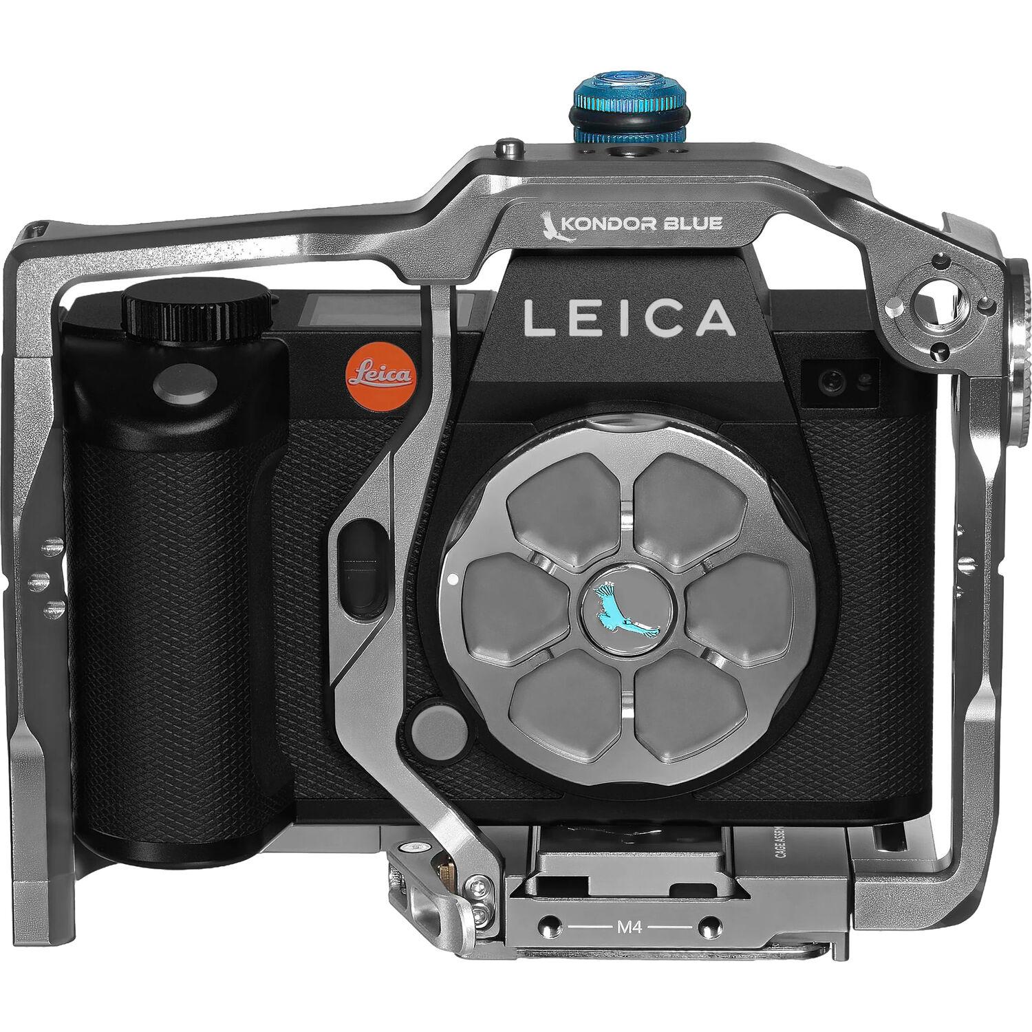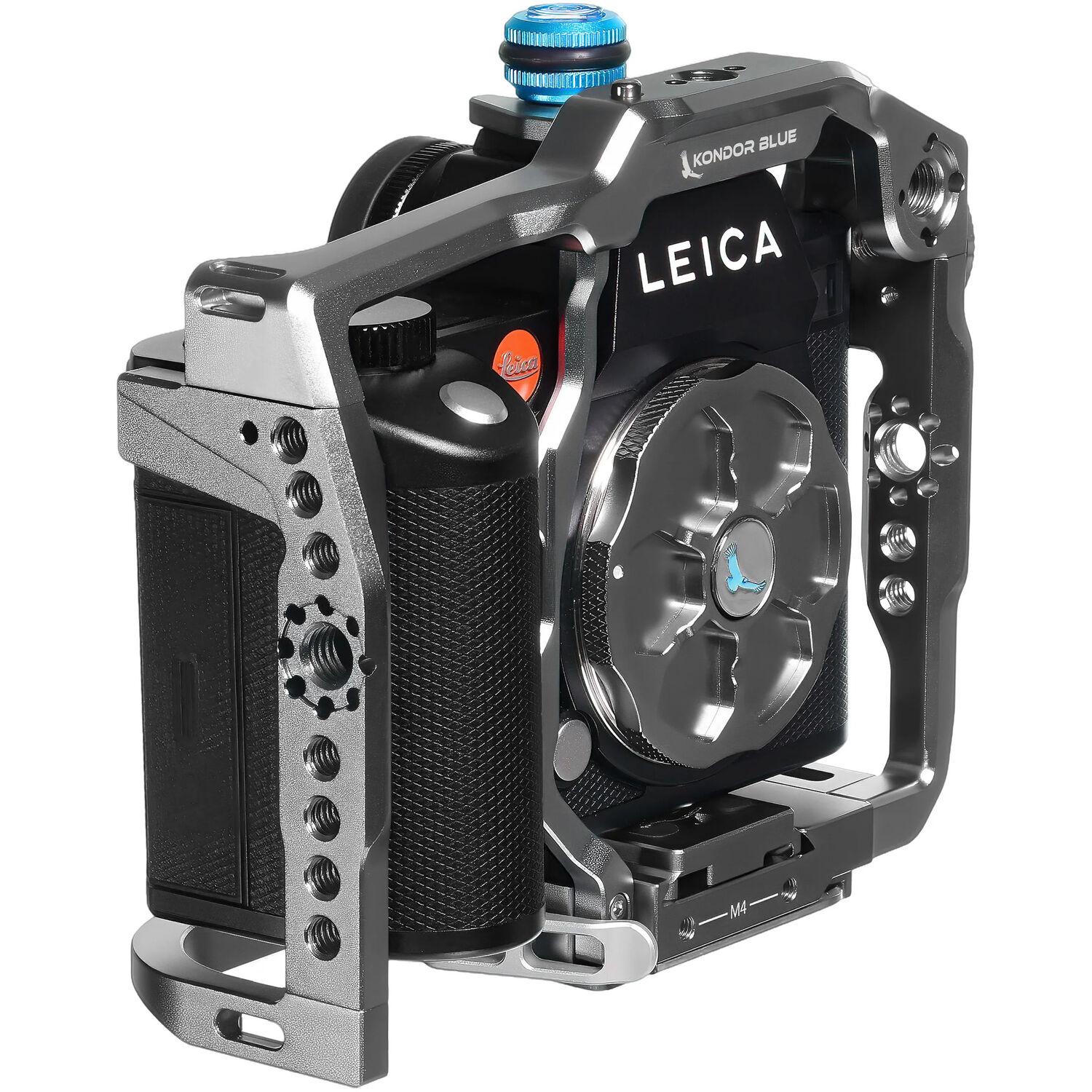 Protect your Leica camera and enhance its possibilities for mounting accessories on it with this space gray Cage for Leica SL2S/SL2/SL from Kondor Blue. Employing multiple points of contact, the cage is form-fitted to mount solidly on the Leica SL, SL2, or SL2S to prevent wiggle while adding over 30 threaded 1/4"-20, 3/8"-16, and M4 holes for a wide variety of accessory mounting points. Built-in NATO rails provide right-side, left-side, and top plate mounting options, and the included HDMI and USB-C cable clamp ensures your cables remain securely tethered to your camera at all times. All of the camera's functions remain accessible with the cage on the camera, and you won't need to remove the cage, even when swapping out batteries.