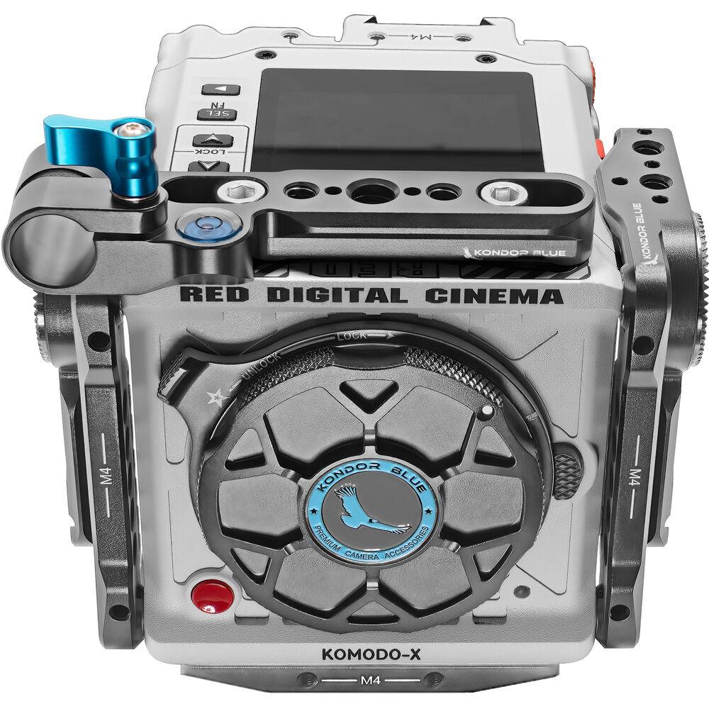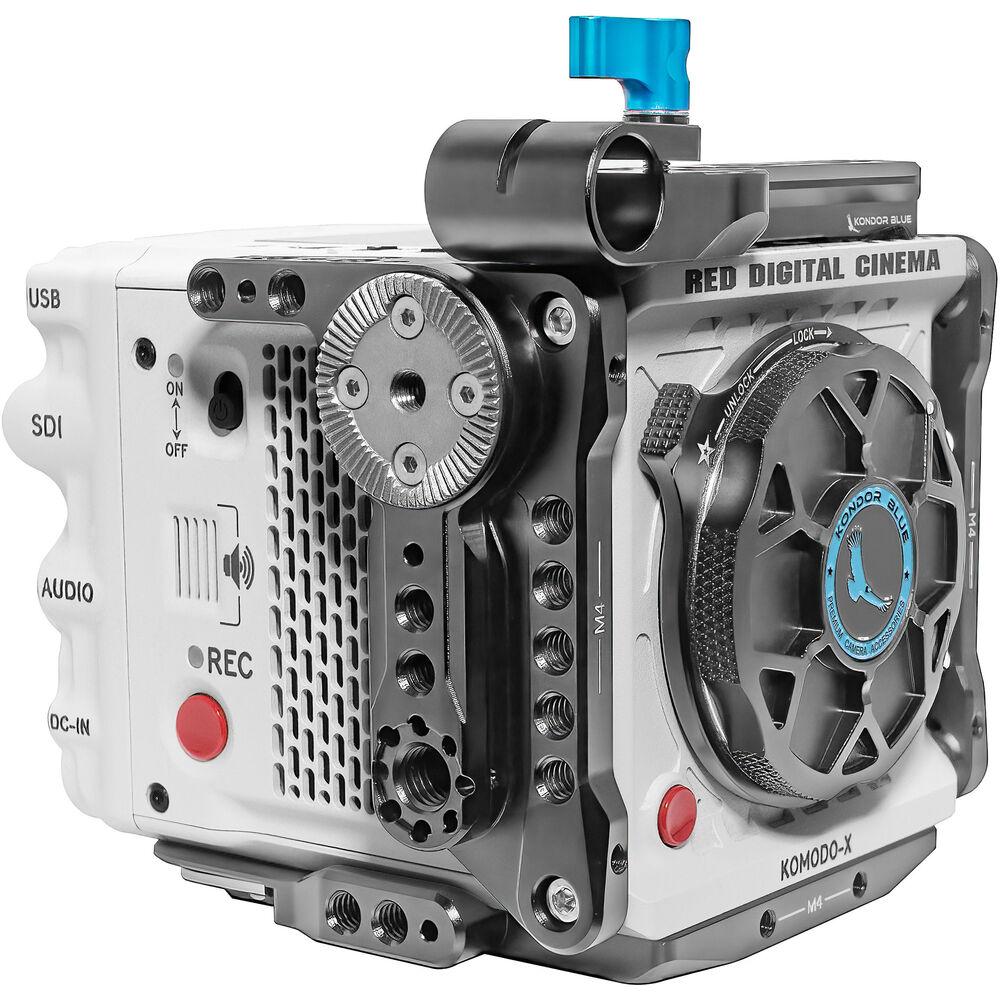 Add protection and a variety of accessory mounting options to your camera with the space gray Camera Cage for RED KOMODO-X from Kondor Blue. Compatible with both the KOMODO-X and the original KOMODO, this cage maintains to access all the camera's ports and controls. It is compatible with a wide range of RED accessories, including the Outrigger Handle and RED RF to PL adapter brackets. Features include one 15mm rod clamp, ARRI-style handgrip rosettes on both the right and left sides, NATO rails on the top and sides, and multiple anti-twist 1/4"-20 and 3/8"-16 threads. The bottom provided M4 threads for an optional lens support, and the sides incorporate M4 threads for the upcoming Kondor Blue Electronic ND RF to PL Adapter.