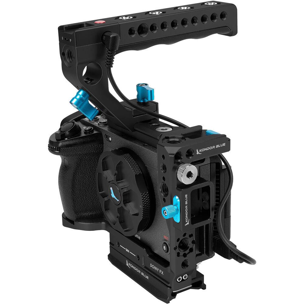 Protect, support accessories, and get a run/stop grip on your Sony FX3 or FX30 digital cinema camera with the black Cage with Trigger Handle from Kondor Blue. Based around a modular camera cage, this kit also includes a top trigger handle that enables you to run/stop your camera when paired with a separately available cable. The cage features a detachable Arca Swiss-style bottom plate that provides compatibility with the DJI Ronin stabilizer.