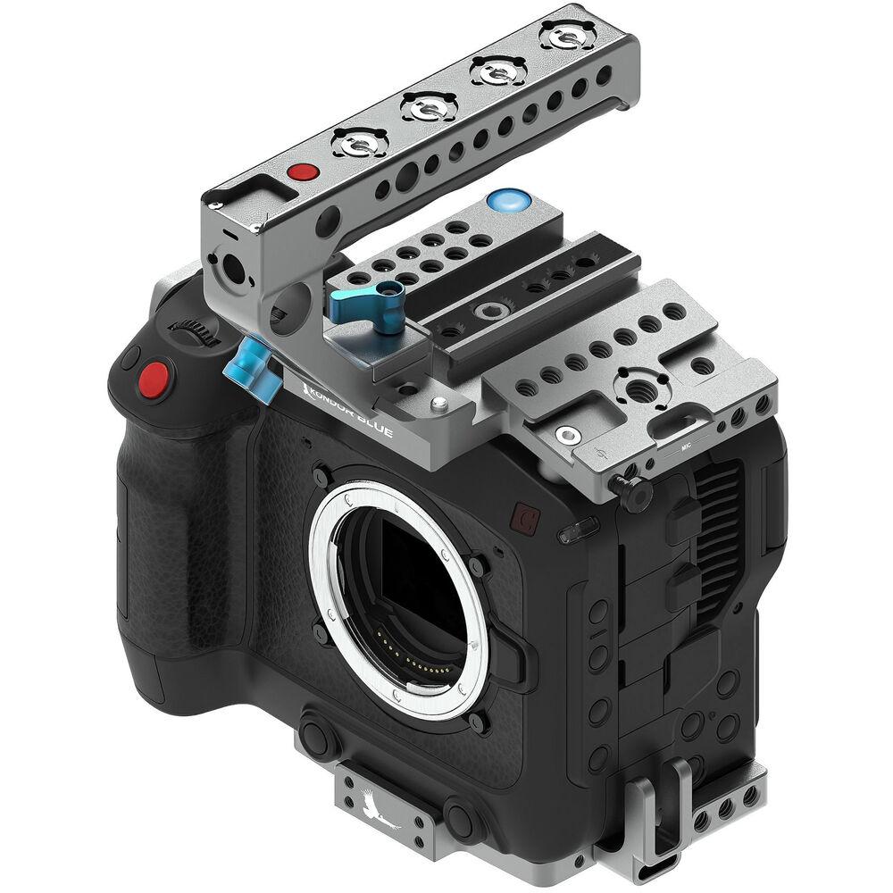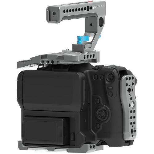 Add protection, a top handle, and a variety of accessories to your Canon EOS C70 camera with this space gray Camera Cage with Top Handle from Kondor Blue. The modular camera cage features a top plate, side plate, and bottom plate, providing an open design that allows you to access all the camera's ports and controls and utilize individual plates if needed. The included top trigger handle features LANC start/stop control and multiple mounting options.