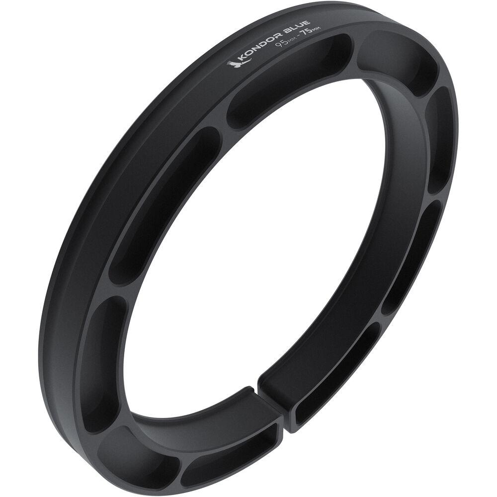 Filmmakers can use the Cine Lens Clamp-On Adapter Ring from Kondor Blue to secure their Kondor Blue matte box with a 95mm opening onto a lens with a 75mm outer diameter. This durable aluminum adapter clamps onto the outside of your lens and there is a safety groove that catches inside the matte box opening to hold it in place. The ring is both lightweight and sturdy, blocking light from seeping in behind your matte box.