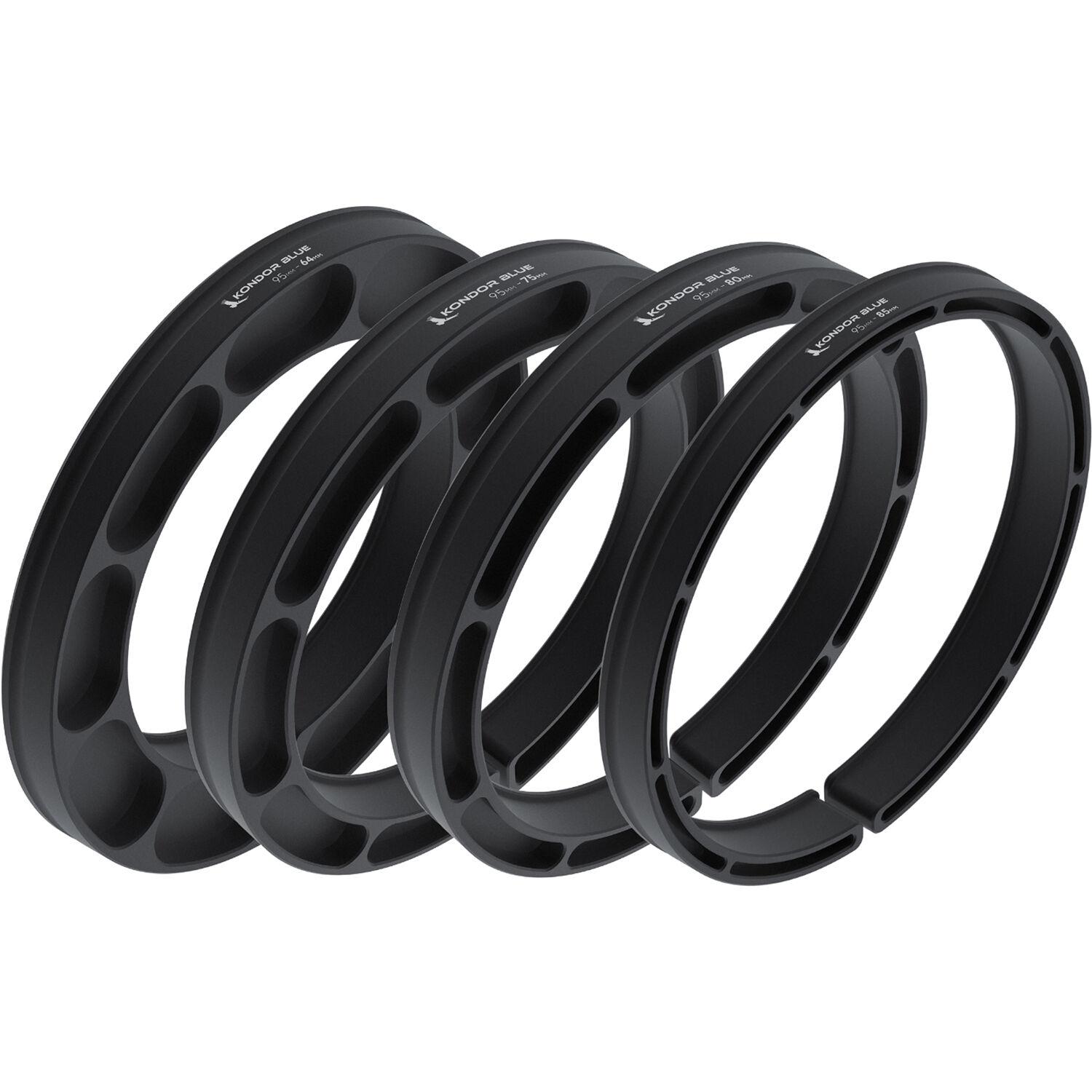 Mount your Kondor Blue matte box on multiple cine lenses with this Cine Lens Clamp-On Adapter Ring Set from Kondor Blue. The set includes four ring adapters that let you adapt from 95 to 85, 80, 75, and 70mm with ease. A 360° bearing track facilitates snapping each ring into the matte box clamp. Each ring is very lightweight at only 0.4 oz.