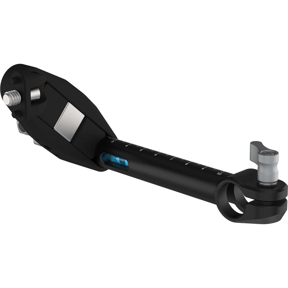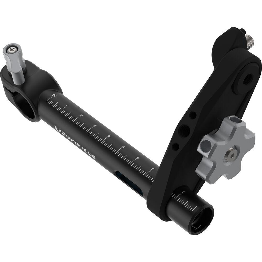 Designed as a versatile mounting solution for DJI Focus Pro LiDAR units on professional camera builds, this Cine Mount A Kit from Kondor Blue features a dual-lock pivot design for attachment above or below the camera lens. The kit features a 3.9" 15mm rod assembly with a built-in bubble level and a captive knurled tension knob for rapid, precise vertical and horizontal adjustments. It sports a 1/4"-20 male screw for attachment to Kondor Blue's DJI LiDAR Cage and mounts to a camera rig via its integrated 15mm rod clamp.