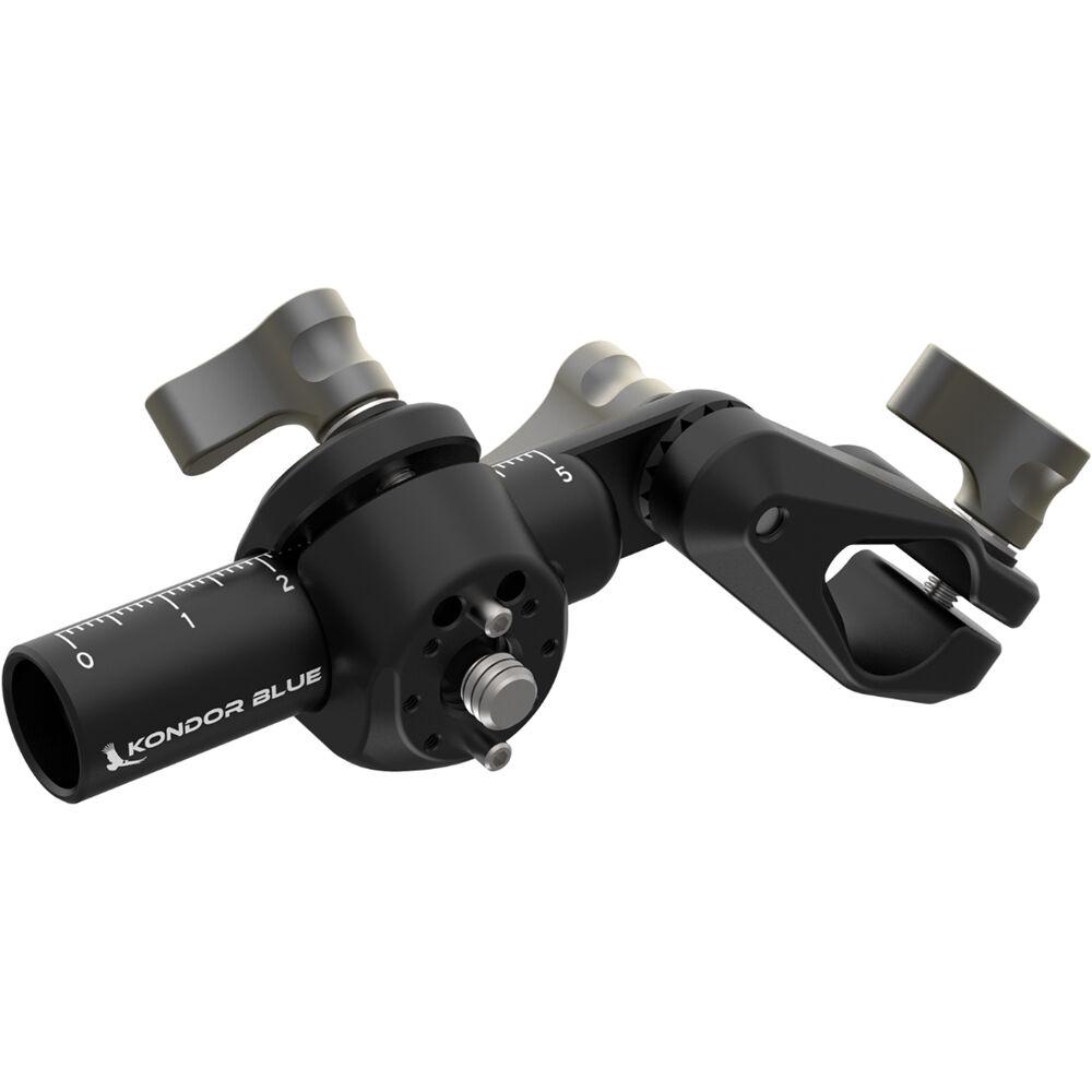 Designed as a versatile mounting solution for DJI Focus Pro LiDAR units on professional camera builds, this Cine Mount C Kit from Kondor Blue features a pivoting design for attachment above or below the camera lens. The kit features a 2" 15mm rod assembly with a built-in bubble level and captive tension knobs for rapid, precise vertical and horizontal adjustments. It sports a 1/4"-20 male screw for attachment to Kondor Blue's DJI LiDAR Cage and mounts on a camera rig via its integrated 15mm rod clamp.