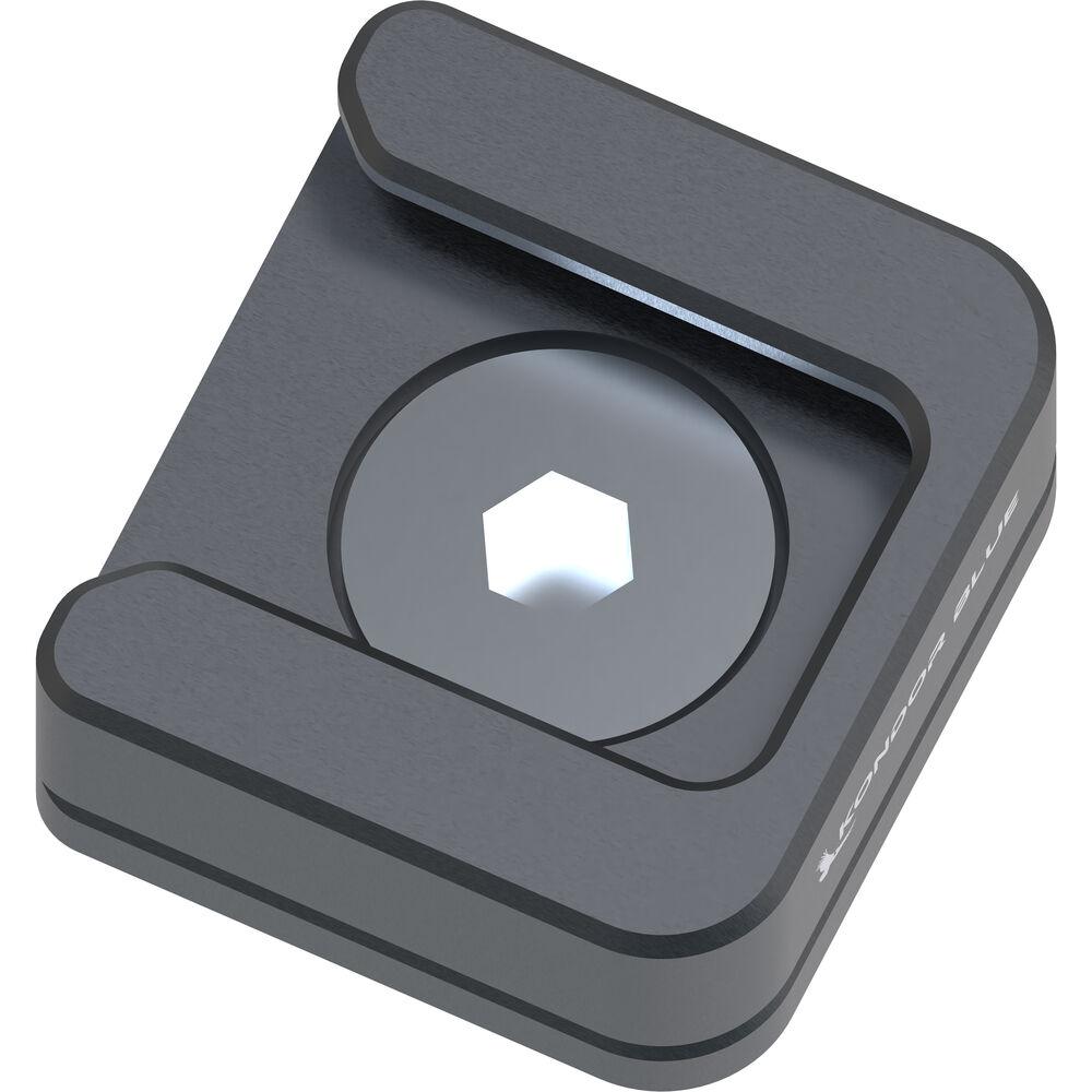 Convert a 1/4"-20 thread into a shoe mount with the space gray Cold Shoe Mount Plate from Kondor Blue. This compact adapter enables you to add a microphone, small LED light, or another shoe-mounted accessory to your camera, cage, or video rig. It features a three-sided design with an Allen key 1/4"-20 screw mount.